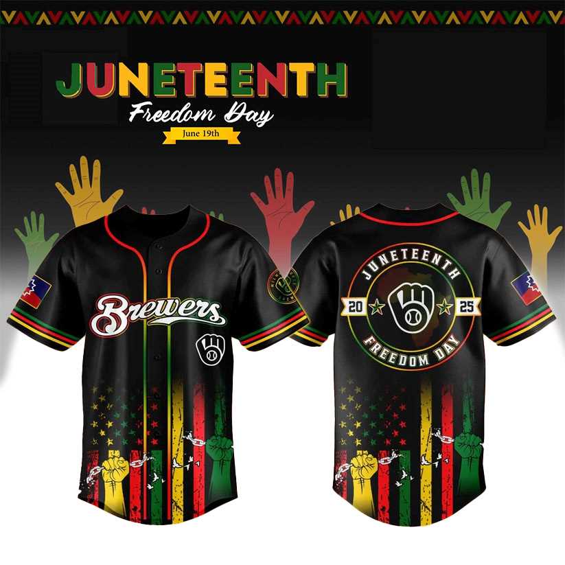 - Introducing the 2025 Milwaukee Brewers Juneteenth Day Baseball Jersey , the perfect addition to any fan’s collection! .The 2025 Milwaukee Brewers Juneteenth Day Baseball Jersey is more than just a piece of apparel; it’s a powerful symbol of pride, unity, and cultural heritage. As we approach this significant date, the Brewers have crafted a jersey that pays homage to the rich history and resilience of the African American community. This limited-edition jersey features vibrant colors and unique designs that celebrate Juneteenth’s legacy while showcasing the team’s commitment to diversity and inclusion.