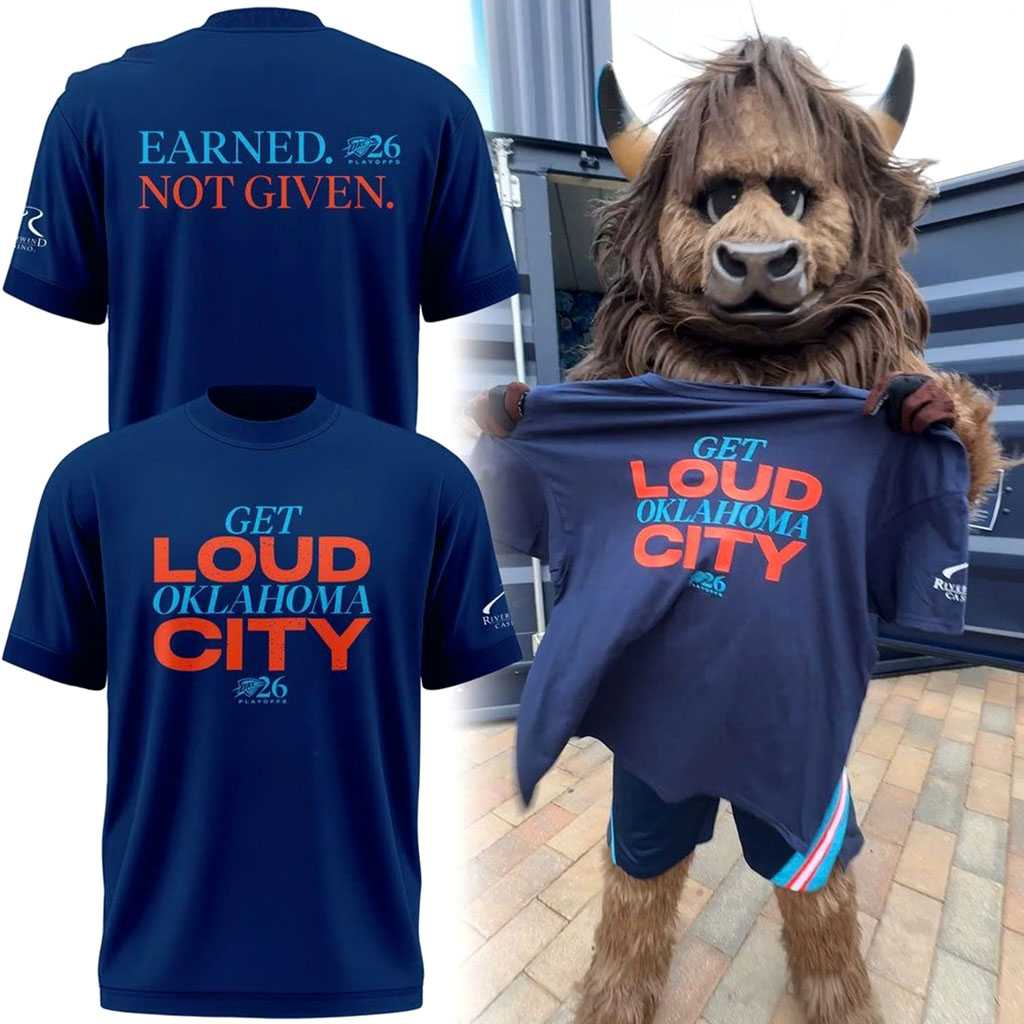Get your 2026 Oklahoma City Thunder Playoffs Earned Not Given T-Shirt and show the league that OKC is ready to strike!