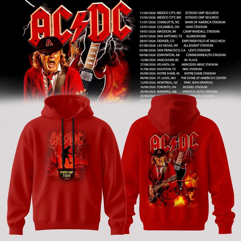 Make a bold statement with the ACDC Tour 2026 Red Hoodie, a vibrant alternative for fans who want to stand out in the crowd. This hoodie captures the fiery spirit of the band with its striking scarlet color and powerful “Power Up” tour graphics. The front is adorned with a detailed illustration of the band in action, rendered in high-contrast black and yellow.This hoodie is built for durability and comfort, featuring a premium mid-weight fabric that feels substantial yet breathable. The ribbed cuffs and waistband provide a secure fit that holds its shape over time. The “ACDC” logo is prominently displayed on the chest, while the back features a large-scale tour graphic that demands attention from afar.Perfect for the ultimate fan, this red edition offers a modern twist on classic tour merchandise. It’s an ideal layering piece for the autumn and winter months, providing both style and insulation. The intricate detailing on the artwork reflects the high energy and production value of the 2026 world tour.Ignite your style today! Order the ACDC Tour 2026 Red Hoodie today and carry the power of rock everywhere you go.