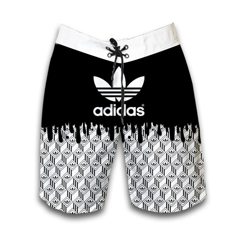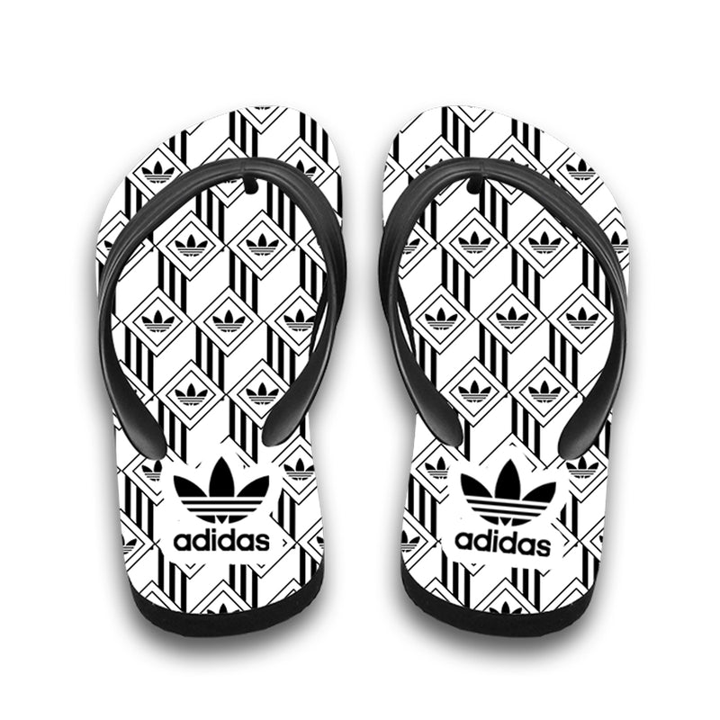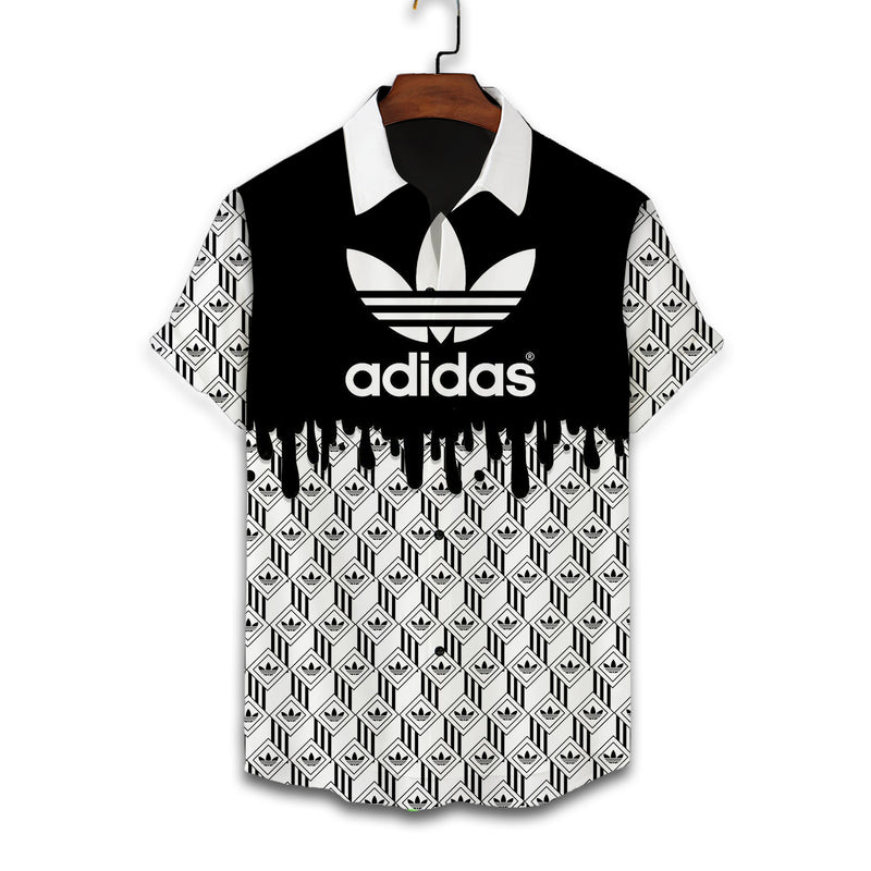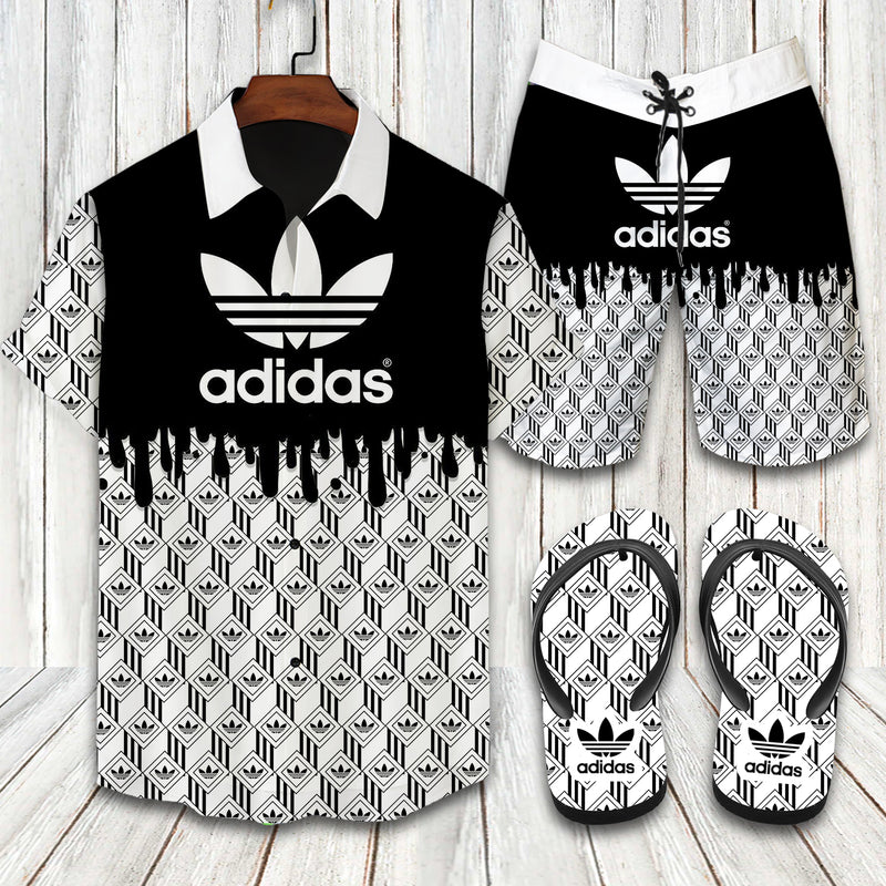 Adidas White Black Logo Pattern Hawaiin Shirt Shorts and Flip Flops Combo Suitable for special occasions such as Christmas, birthday, celebration, housewarming gift.