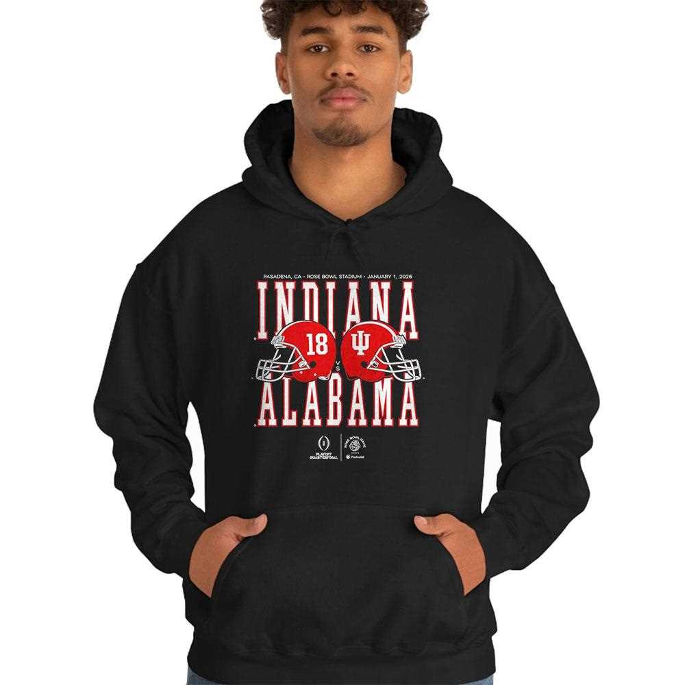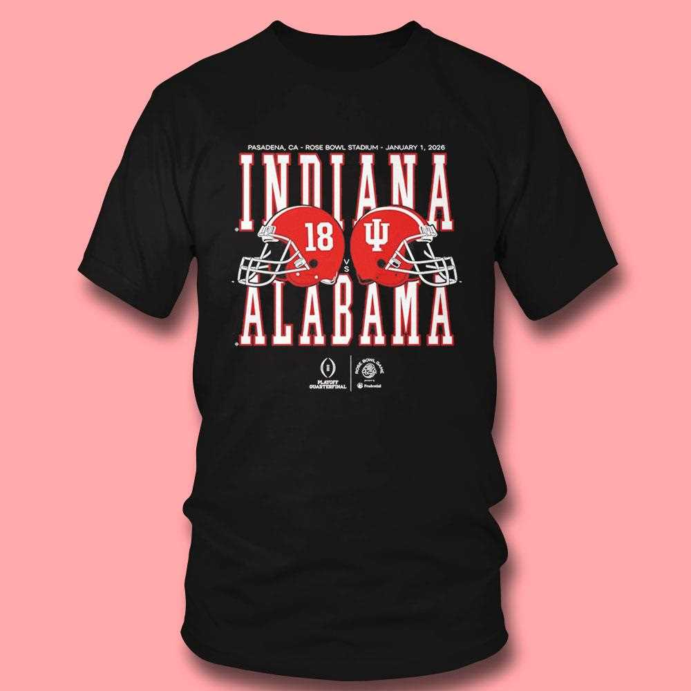 Celebrate one of the most anticipated matchups in college football with this exclusive commemorative tee. The design features a high-impact, side-by-side graphic of the legendary Alabama Crimson Tide and Indiana Hoosiers helmets, symbolizing the clash of titans at the prestigious 2026 Rose Bowl. The vibrant crimson and cream tones are printed with high-density, fade-resistant ink on a premium black cotton base, ensuring a bold look that lasts. Crafted for the ultimate fan, the shirt offers a structured yet soft fit that is perfect for tailgates or game-day watch parties. It is the definitive souvenir for those who live and breathe the spirit of Pasadena and the “Granddaddy of Them All.” Capture the excitement of this historic gridiron battle—order your Alabama vs Indiana Rose Bowl Game 2026 Helmet Matchup Tee today and show your true colors!. T-shirt !