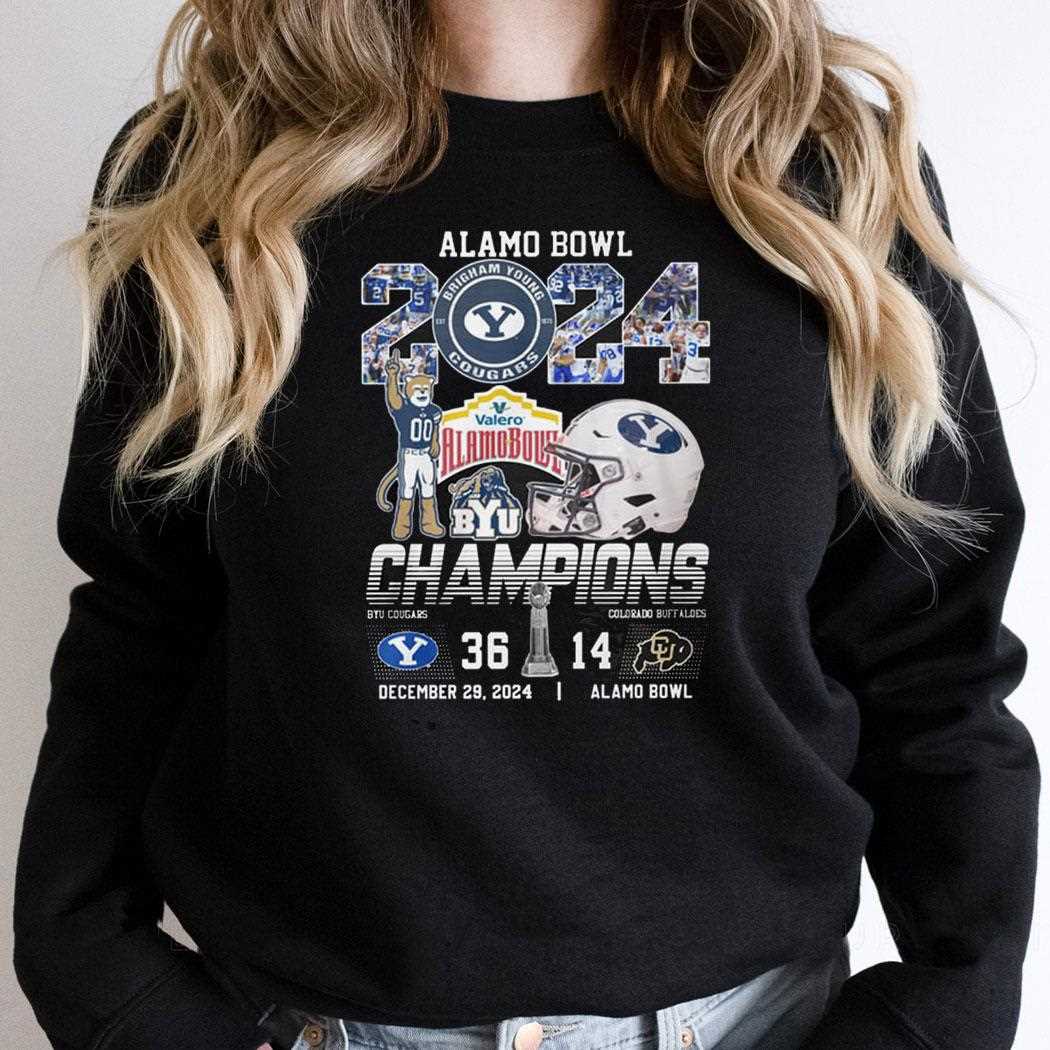 .Get ready to celebrate the triumph of the BYU Cougars with the exclusive Alamo Bowl 2024 Champions shirt! After an exhilarating matchup where BYU dominated Colorado with a score of 36-14, this shirt is more than just apparel; it’s a badge of honor for every fan.