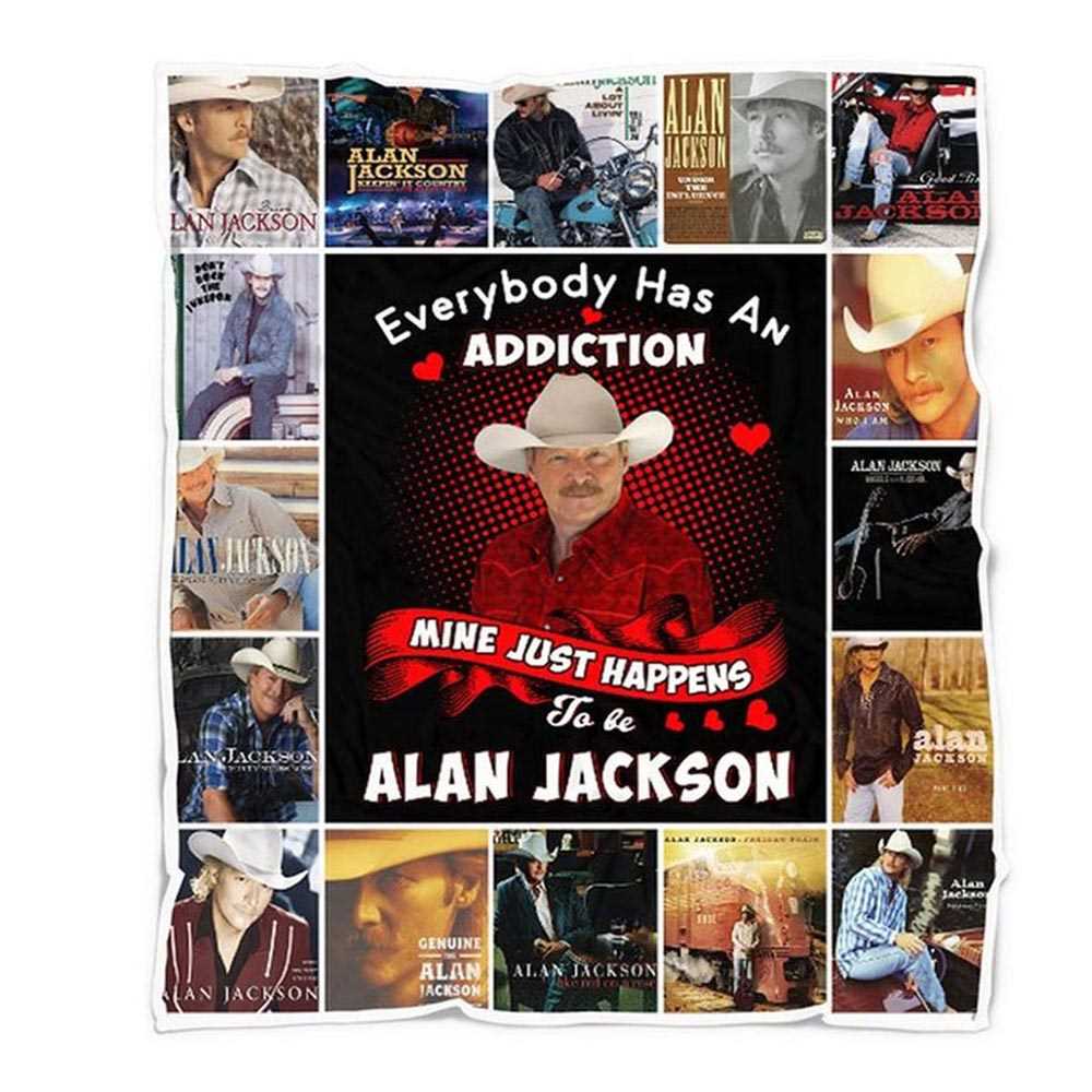 For some, it’s coffee. For others, it’s TV. For you, it’s the timeless country sound of Alan Jackson. This cozy fleece blanket proudly declares, “Everybody Has An Addiction, Mine Just Happens To Be Alan Jackson,” surrounded by a collage of the country music legend’s iconic moments. It’s the perfect tribute to your favorite artist. Don’t be a ‘Chattahoochee’ without it! Snuggle up with the sounds and memories of a country icon. This is the perfect gift for yourself or the biggest Alan Jackson fan you know. Get yours now!. Alan Jackson Everybody Has An Addiction Mine Is Fleece Blanket Quilt is a great gift for all occasions such as your wedding anniversary, birthday gifts or Christmas gifts. It is soft, cozy and comfortable quilt blanket.