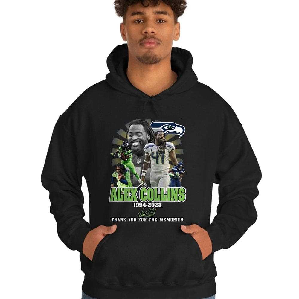 This tribute shirt honors the enduring legacy of the late Alex Collins, a beloved figure in the Seattle Seahawks community. The design features a stunning collage of high-definition action shots, capturing Collins in his signature dynamic running form and his infectious celebratory dances. Set against a deep navy blue background, the graphics utilize the iconic Seahawks’ neon green and silver palette to create a vibrant, lifelike memorial. The text “1994-2023” and “Thank You For The Memories” are rendered in a bold, commemorative font that resonates with every member of the 12th Man. Crafted from premium, heavyweight cotton, this tee offers both durability and a soft touch, making it perfect for game days at Lumen Field or casual wear. The vintage-style layout gives it a timeless feel, ensuring that the spirit of number 41 lives on in the hearts of fans. Whether you’re a long-time supporter or a collector of NFL history, this piece is a must-have to show your respect for a true gridiron warrior. Wear it with pride and keep the memory of his talent and joy alive forever. Don’t miss out on honoring a legend—order your Alex Collins 1994 2023 Memories Seattle Seahawks NFL Tee today and carry his legacy with you!. T-shirt !