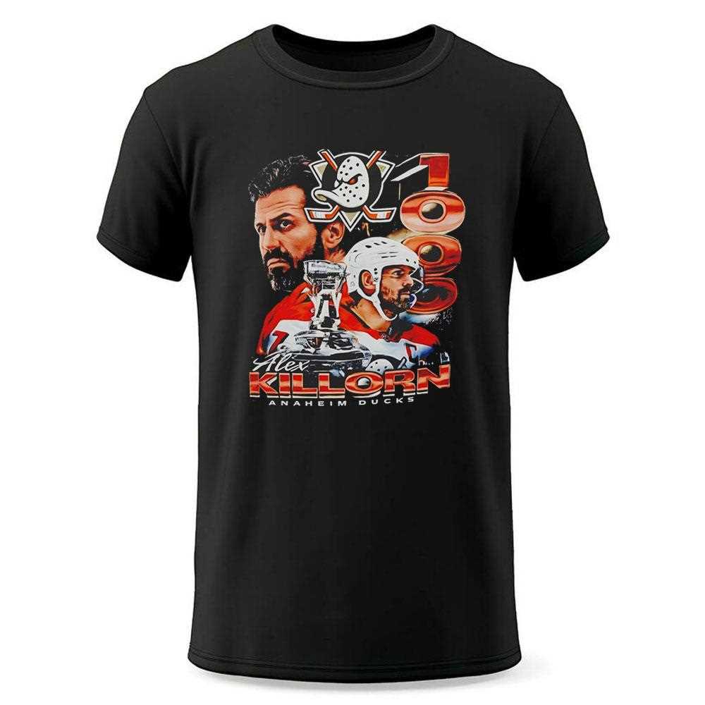 Celebrate the leadership and skill of a modern hockey stalwart with the Alex Killorn Anaheim Ducks graphic tee. This design is a masterclass in modern sports graphics, featuring a high-octane collage of Killorn in his iconic orange and black uniform. The central image captures his focused intensity on the ice, surrounded by stylized speed lines and the legendary Ducks logo. The use of a high-contrast palette ensures that every detail, from the texture of the hockey pads to the shine on the skates, is rendered with museum-quality precision. This garment is constructed from heavy-weight, pre-shrunk cotton, providing a sturdy silhouette and all-day comfort for the “Die-Hard” hockey faithful. It represents the grit and determination of the Anaheim squad, making it an essential addition to any fan’s rotation. Wear it with pride as you cheer for the next power play or game-winning goal. Show your loyalty to the pond—purchase your Alex Killorn Anaheim Ducks Hockey Graphic Tee today and join the hunt for the Cup!. T-shirt !