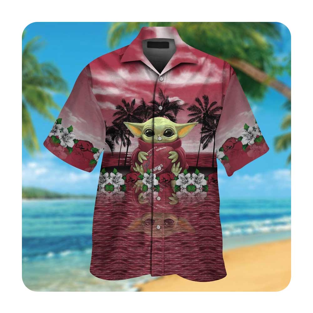 Arkansas Razorbacks And Baby Yoda Hawaii Shirt Summer Button Up Shirt For Men Women