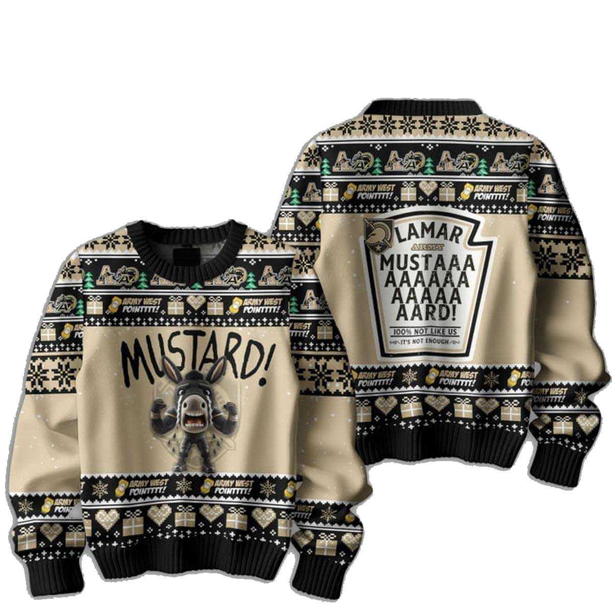 Army West Point Mustard Not Like Us Christmas Ugly Sweater