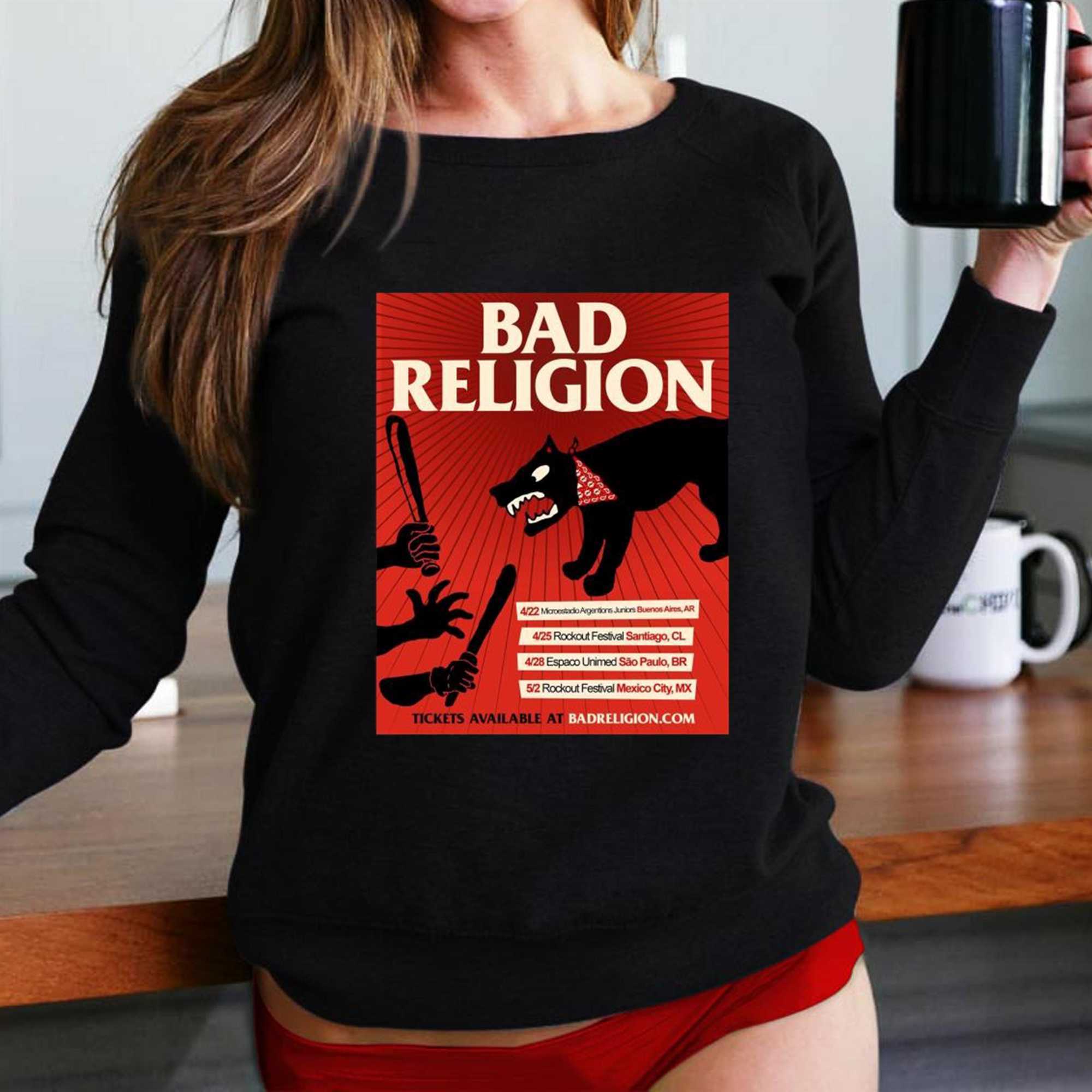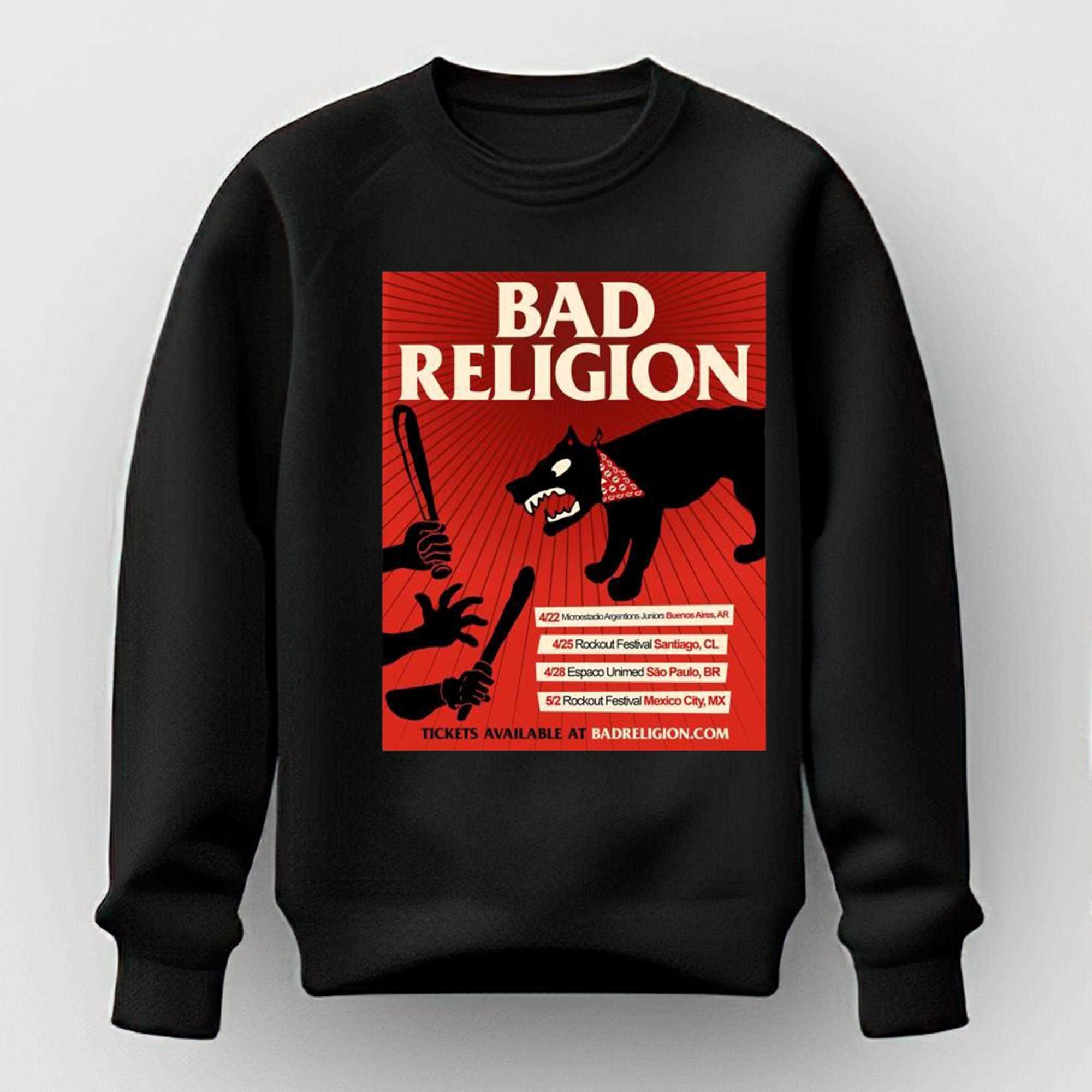 Embrace the uncompromising spirit of punk rock with a design that pays homage to the legends of the scene. The Bad Religion Usa Tour 2026 Poster Tee is an essential piece of history for any fan of Greg Graffin and the crew. The design features a high-impact, minimalist graphic centered on the iconic “Crossbuster” logo, overlaid with a list of 2026 tour cities in a gritty, DIY-inspired typography. The stark contrast between the red, white, and black colors on the dark fabric evokes the rebellious energy of the underground movement. This shirt is a masterclass in clean, authoritative design, signaling your commitment to thought-provoking lyrics and high-energy riffs. Crafted from heavy-duty, 100% pre-shrunk cotton, this tee is built to survive the most intense mosh pits while maintaining its structured silhouette. The fabric is soft-washed for a comfortable, “lived-in” feel right out of the box. It’s more than just a band shirt; it’s a symbol of intellectual resistance and musical integrity. Whether you’re heading to a local dive bar or a massive outdoor festival, this tee ensures you look the part of a true punk enthusiast. Support the legacy of one of the most influential bands in history and keep the movement alive. Secure your spot in the tour family. Purchase the Bad Religion Usa Tour 2026 Poster Tee now and stay loud!. T-shirt !