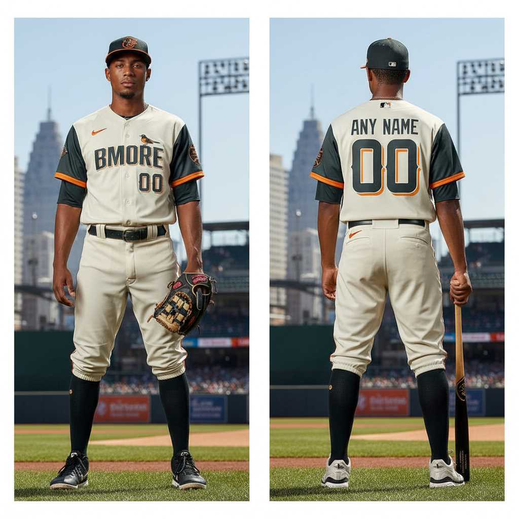 The ultimate tribute to Charm City pride is here with the Baltimore Orioles City Connect 2026 Custom Name Jersey. This striking design features a sophisticated cream-colored body contrasted with sleek dark charcoal sleeves and shoulders, all accented by vibrant orange piping. The front proudly displays “BMORE” in bold lettering, with a beautifully rendered Baltimore Oriole perched dynamically on the ‘M’, alongside the iconic “00” below, symbolizing both unity and individuality. On the reverse, “ANY NAME” arches gracefully above the prominent “00”, offering a personalized touch. This jersey perfectly captures the city’s spirit, blending classic baseball aesthetics with a modern, urban edge, making it an instant classic for any true fan.