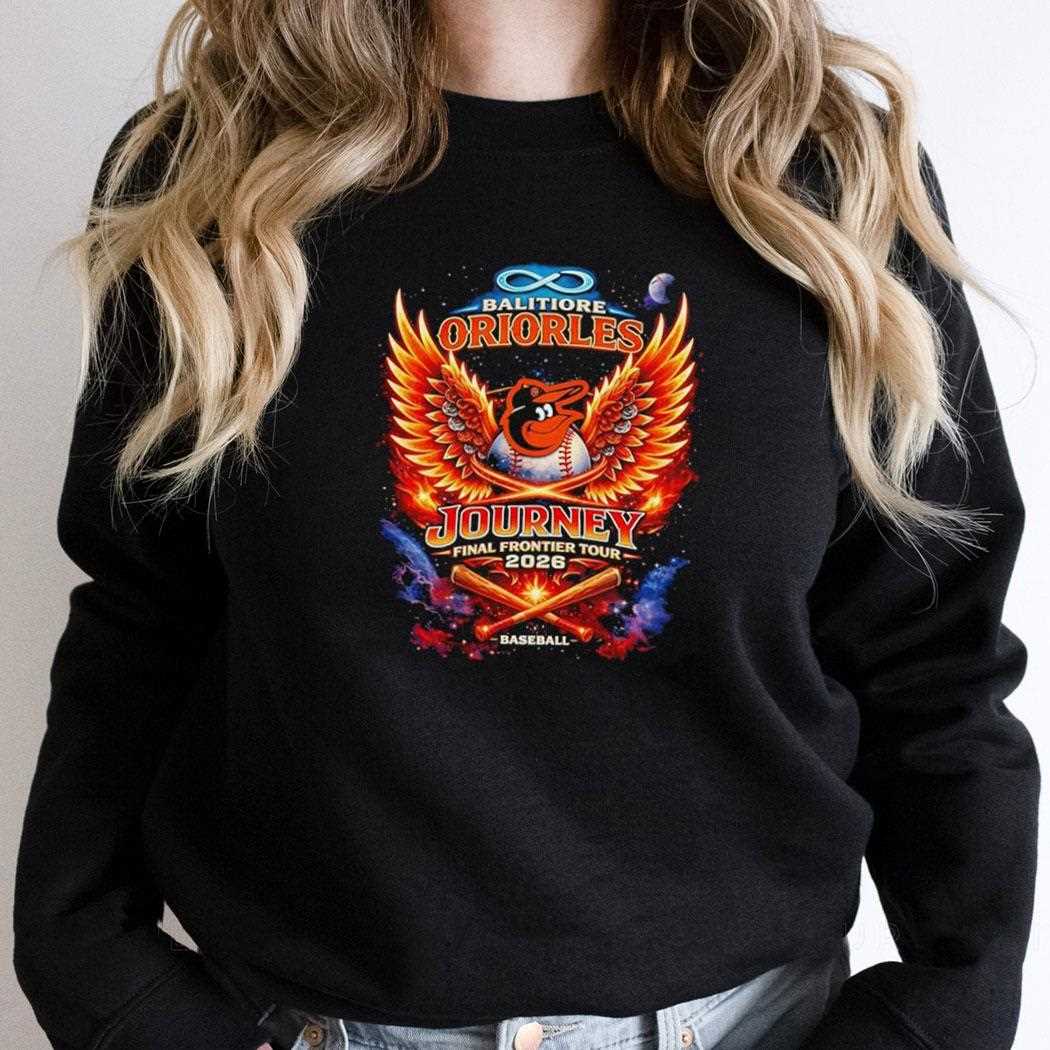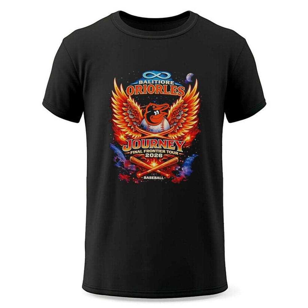 Witness the ultimate crossover between classic rock and major league baseball. This unique collaboration celebrates the Baltimore Orioles alongside Journey’s “Final Frontier” tour, featuring a cosmic bird logo flying through a space-themed background. The vintage-inspired graphics blend the team’s orange and black colors with the epic sci-fi aesthetic of Journey’s album art. It’s a rare collectible that appeals to both sports fanatics and music lovers alike. The design is timeless, bridging the gap between generations of fans. Get your Baltimore Orioles X Journey Final Frontier Tour 2026 Baseball Tee before it’s gone!. T-shirt !