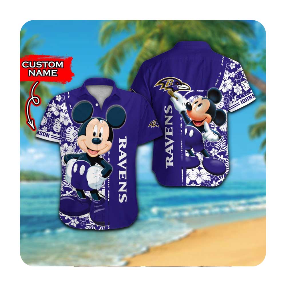 Baltimore Ravens And Mickey Mouse Custom Name Hawaii Shirt Summer Button Up Shirt For Men Women