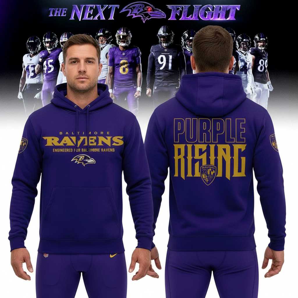 Stand out in a sea of fans with the vibrant Baltimore Ravens Darkness There And Nothing More 2026 The Next Flight Purple Tshirt Edition. This design takes the legendary Ravens purple and infuses it with a dark, artistic twist that perfectly captures the “Darkness” theme. The front features a bold “Purple Rising” graphic on the sleeve and a sleek team logo on the chest, while the back showcases a stunning, large-scale print that integrates the team’s 1996 founding year with modern, aggressive typography. It’s a fresh take on classic fan apparel that celebrates both the past and the future of the franchise.