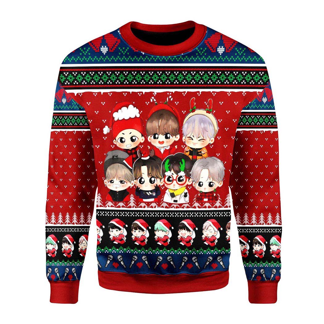 Bangtan Boys Friends BTS Chibi Ugly Christmas Knit Sweater, 3D Printed Unisex Sweater, Hoodie, Kid Sweater