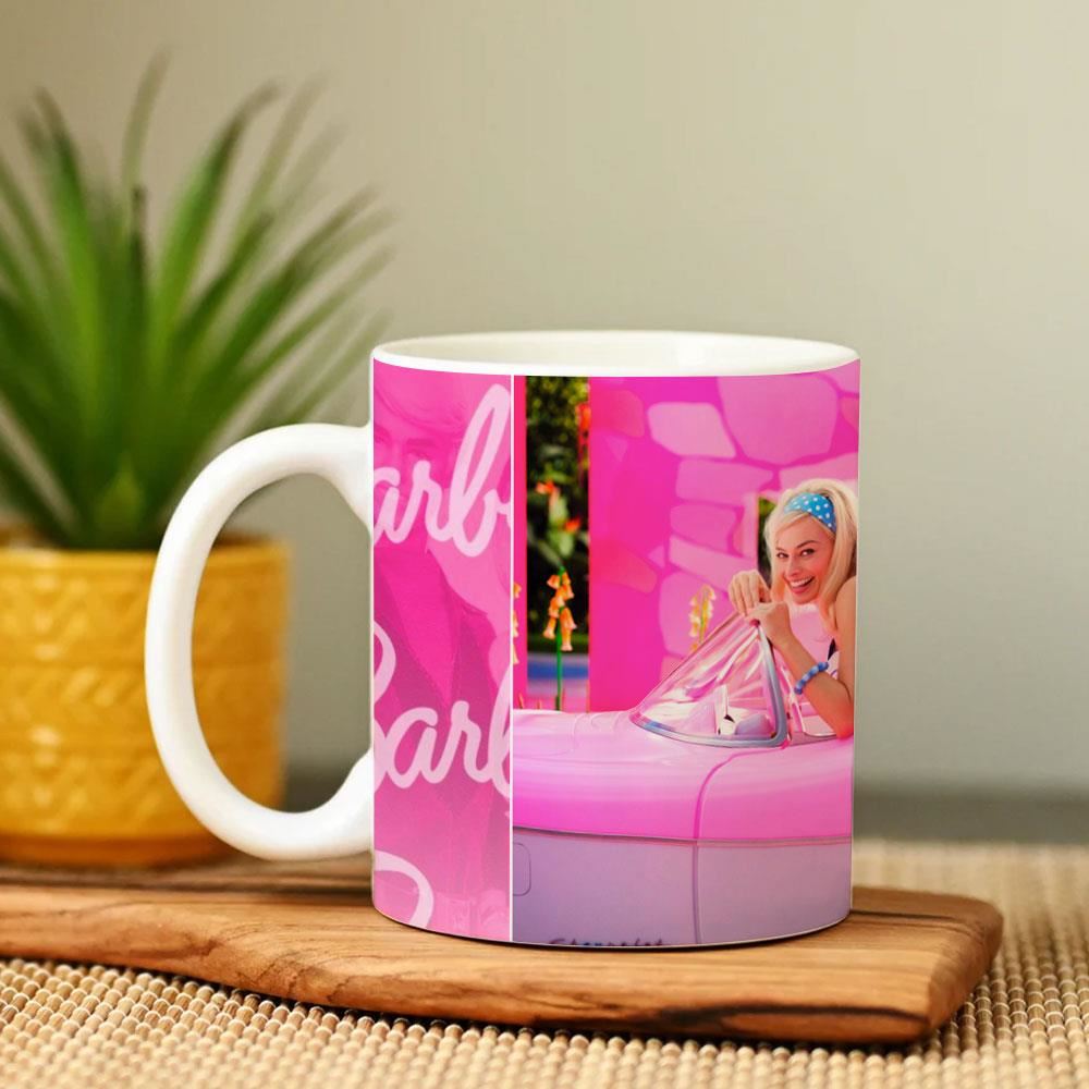 .Introducing the Barbie in a Car Barbie Movie Mug – the perfect accessory for any Barbie fan! This limited edition mug features the iconic Barbie in a Car Barbie Movie design, showcasing the beloved character in her stylish car, ready for an adventure.
