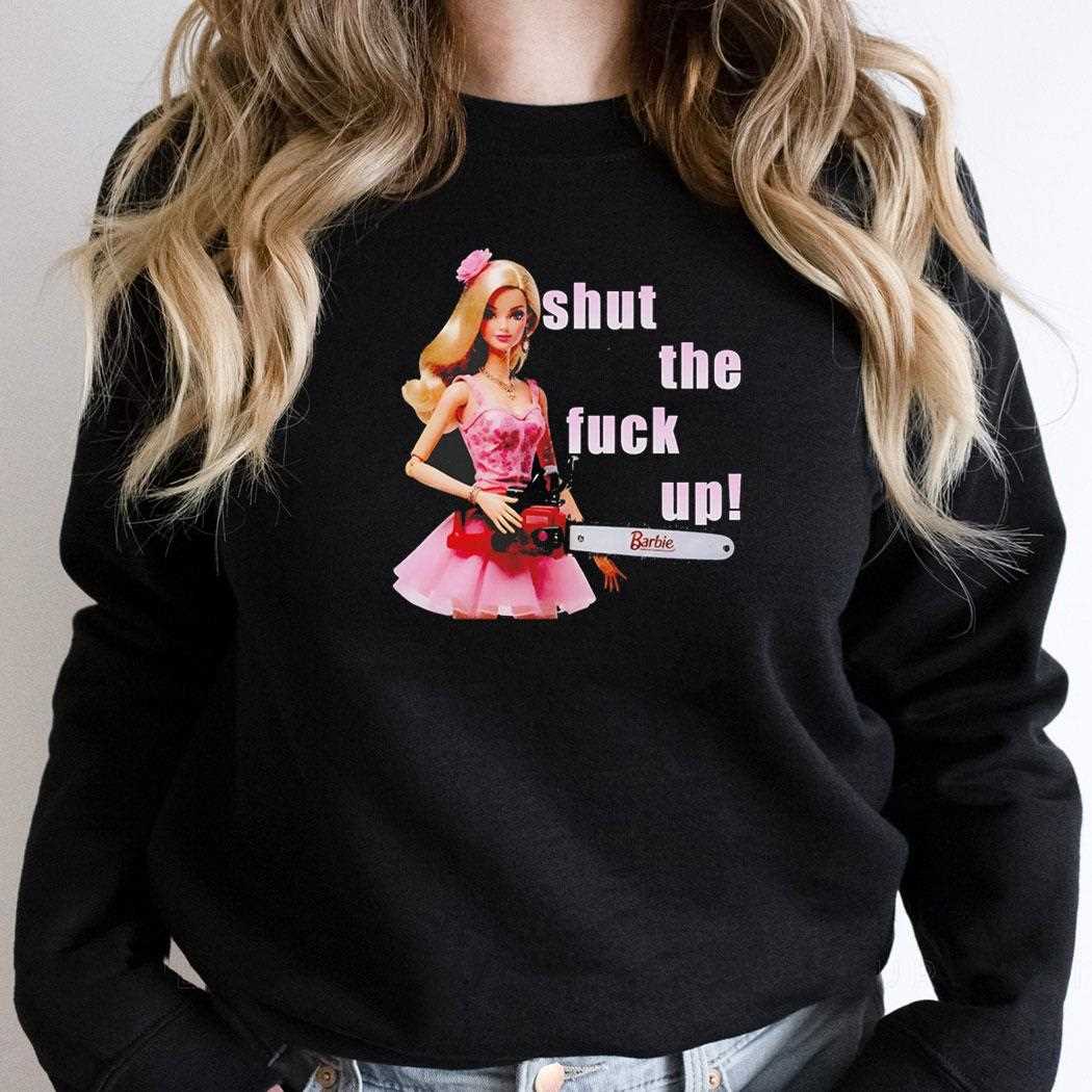 This shirt puts a rebellious spin on a classic icon, featuring a stylish doll graphic paired with a bold, unapologetic phrase. It’s the ultimate statement piece for those who mix high-fashion aesthetics with a sassy, no-nonsense attitude. Make your voice heard without saying a word—order the Barbie Shut The Fuck Up Tee and let your outfit do the talking!. T-shirt !