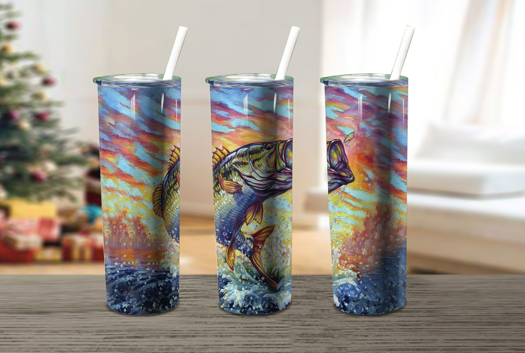 Bass Fish Jumping Water Fishing Skinny Tumbler