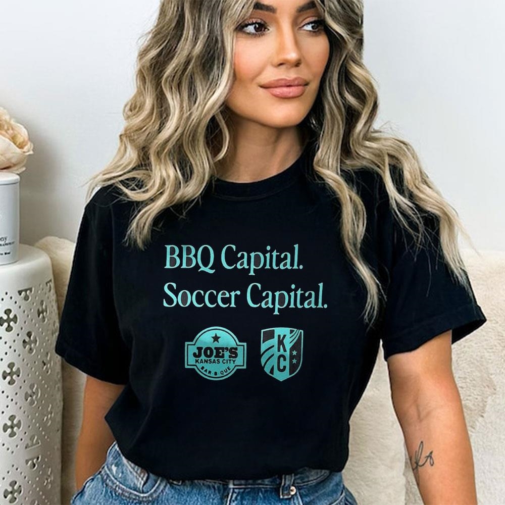 Invest in the BBQ Capital Soccer Capital T-Shirt for Ladies and elevate your style while celebrating the perfect fusion of soccer and grilling. This is a must-have addition to any soccer fan’s wardrobe, guaranteed to turn heads and spark excitement wherever you go..