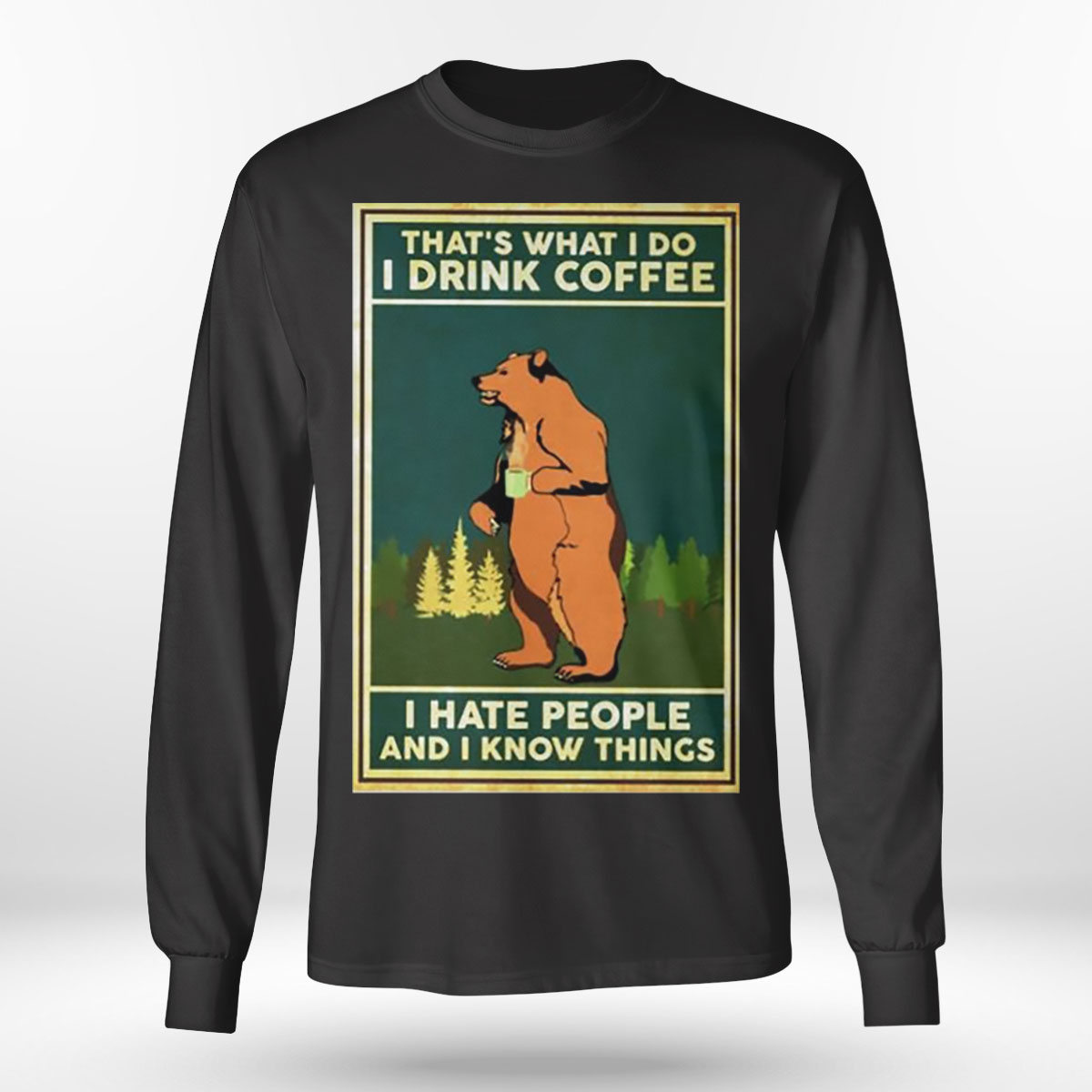 Bear Thats What I Do I Drink Coffee Shirt Long Sleeve, Ladies Tee is a stylish, comfy shirt. Made of 100% cotton, it is cool and soft and keeps you cool in summer days. This edgy shirt comes in different colors, but the black stands out the most and matches with everything. It has many uses like casual wear, party wear, office wear and much more. Product details: