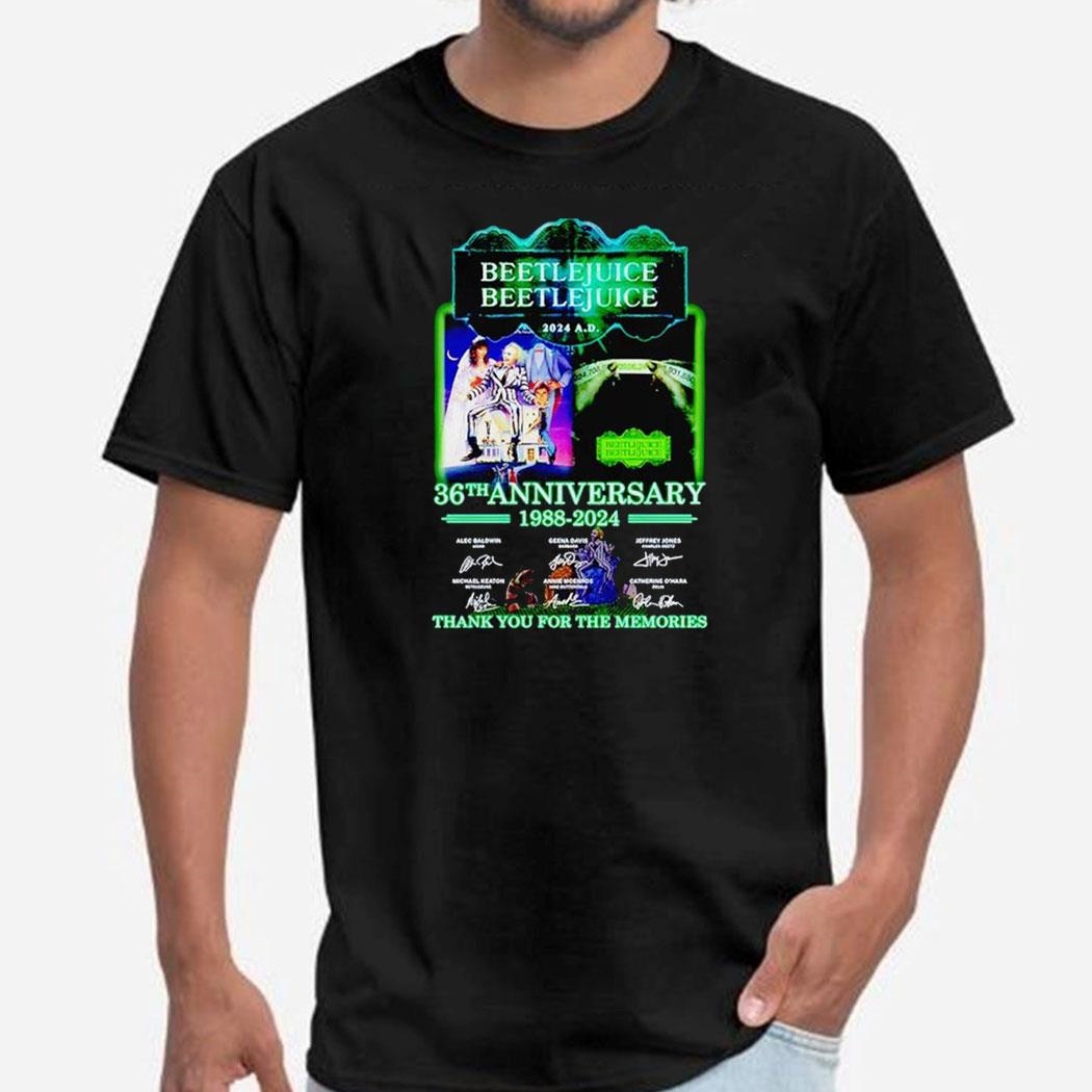 If you’re searching for a Beetlejuice 36th Anniversary 1988-2024 Thank You For The Memories Shirt Ladies Tee that can offer both a soft feel and breathability to keep you comfortable on sweltering summer days, look no further. Don’t wait any longer, add it to your cart and experience the benefits of our 100% cotton T-shirt !