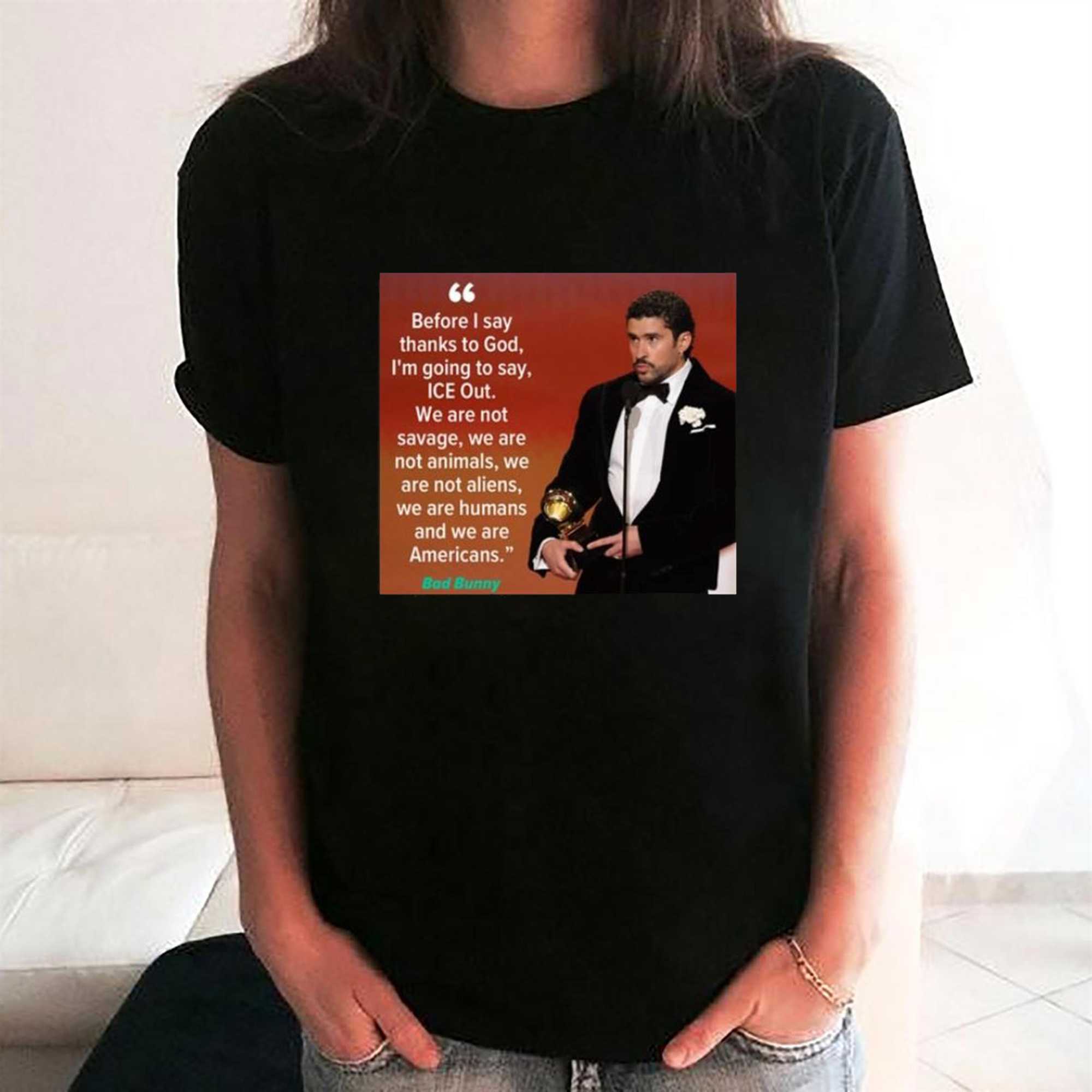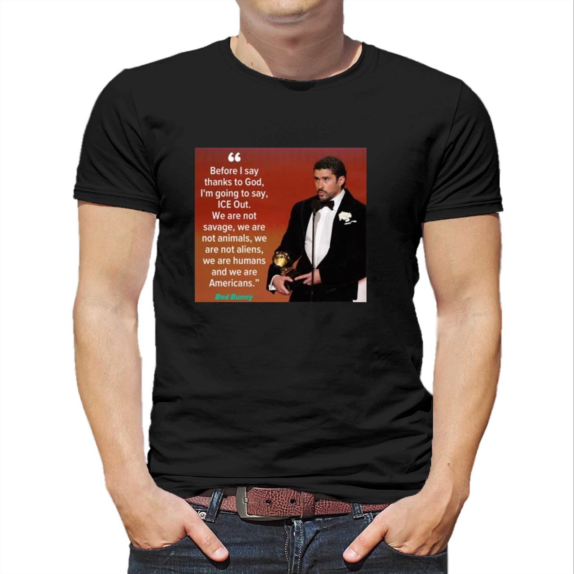 Make a bold and provocative statement about modern culture and priorities with the Before I Say Thanks To God Im Going To Say Ice Out Shirt. This design features a sharp, high-contrast graphic of a figure representing modern celebrity status, accompanied by a biting and humorous quote about the desire for “ICE” (jewelry/wealth) over traditional values. It captures a specific moment in pop-culture discourse, designed for those who appreciate satire and social commentary through their clothing. The layout is clean and impactful, using bold typography to ensure the message is unmistakable. Set on a deep black background, the white and grey graphics pop with an authoritative energy. This tee is crafted from a premium cotton blend, providing a soft feel and a durable, standard fit for everyday wear. The print is high-resolution, ensuring the detailed portraiture and the text remain sharp through countless washes. It reflects a personality that is both observant and unapologetic, perfect for starting conversations and turning heads in any setting. Whether you see it as a critique of materialism or a funny nod to the rap world, this shirt is a standout piece in any alternative wardrobe. Show off your sharp wit and your understanding of modern media dynamics. Stand for something different and unique. Purchase the Before I Say Thanks To God Im Going To Say Ice Out Shirt today and let your style do the talking!.