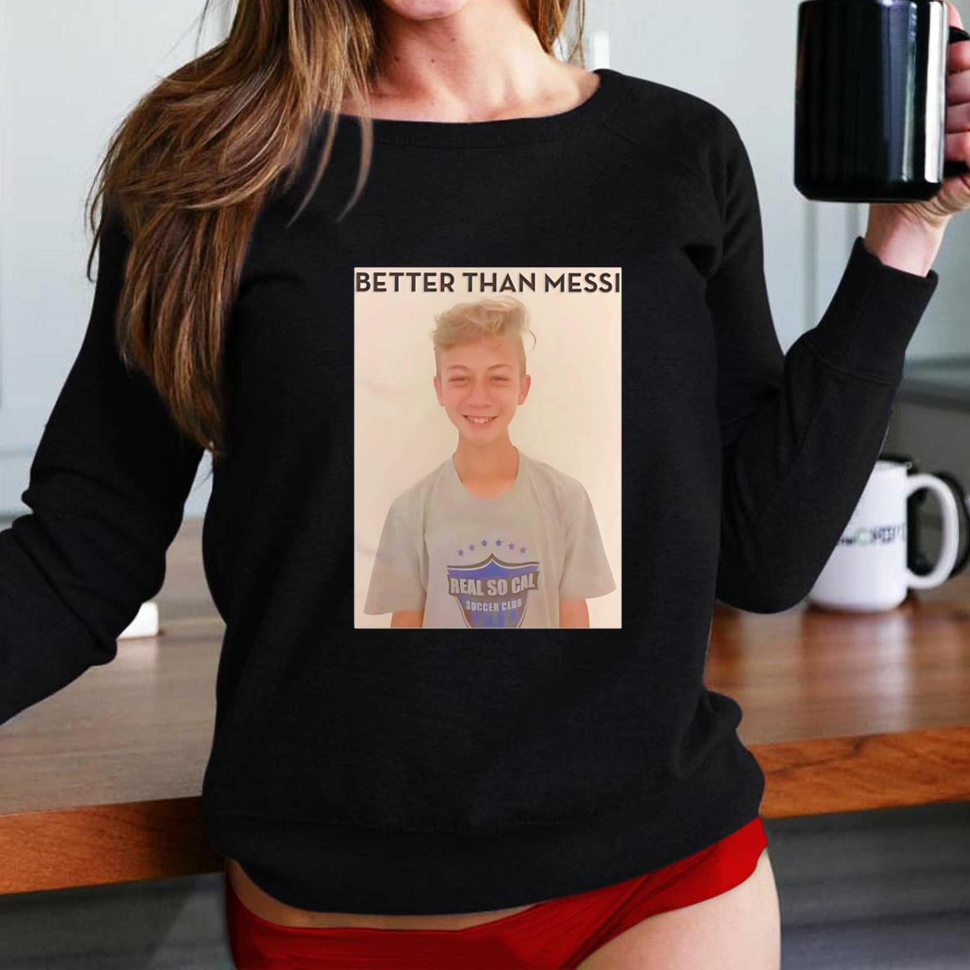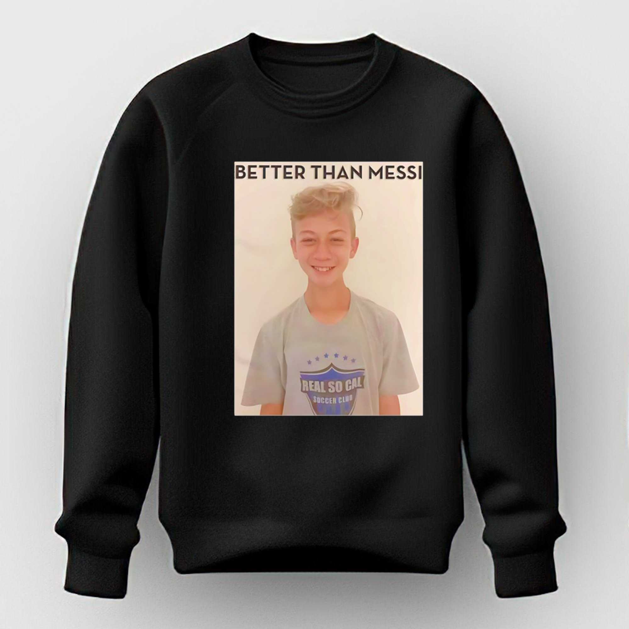 Inject some playful confidence and a touch of lighthearted controversy into your soccer wardrobe with the Better Than Messi Tee. This design is a brilliant piece of visual humor, featuring a high-quality photographic graphic of a rising young talent accompanied by the bold and celebratory claim that challenges the status quo of the pitch. It perfectly captures the competitive spirit and the cheeky banter found on playgrounds and professional stadiums alike, making it an instant favorite for those who love to spark a friendly debate about the greatest of all time.