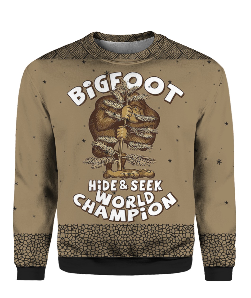 Bigfoot Hide And Seek Champion 3D Ugly Sweater Hoodie