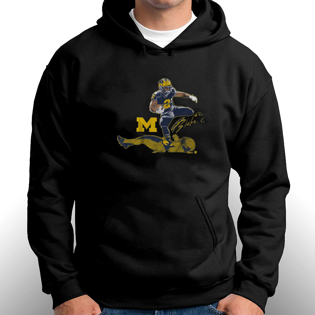 Show your support for the Michigan Wolverines with this stylish BLAKE CORUM SUPERSTAR POSE MICHIGAN FOOTBALL Shirt! This shirt features a bold design with the team logo and colors, making it perfect for any fan. It’s made from a comfortable cotton blend fabric and is sure to keep you looking and feeling great. Get yours today and show your team spirit!.