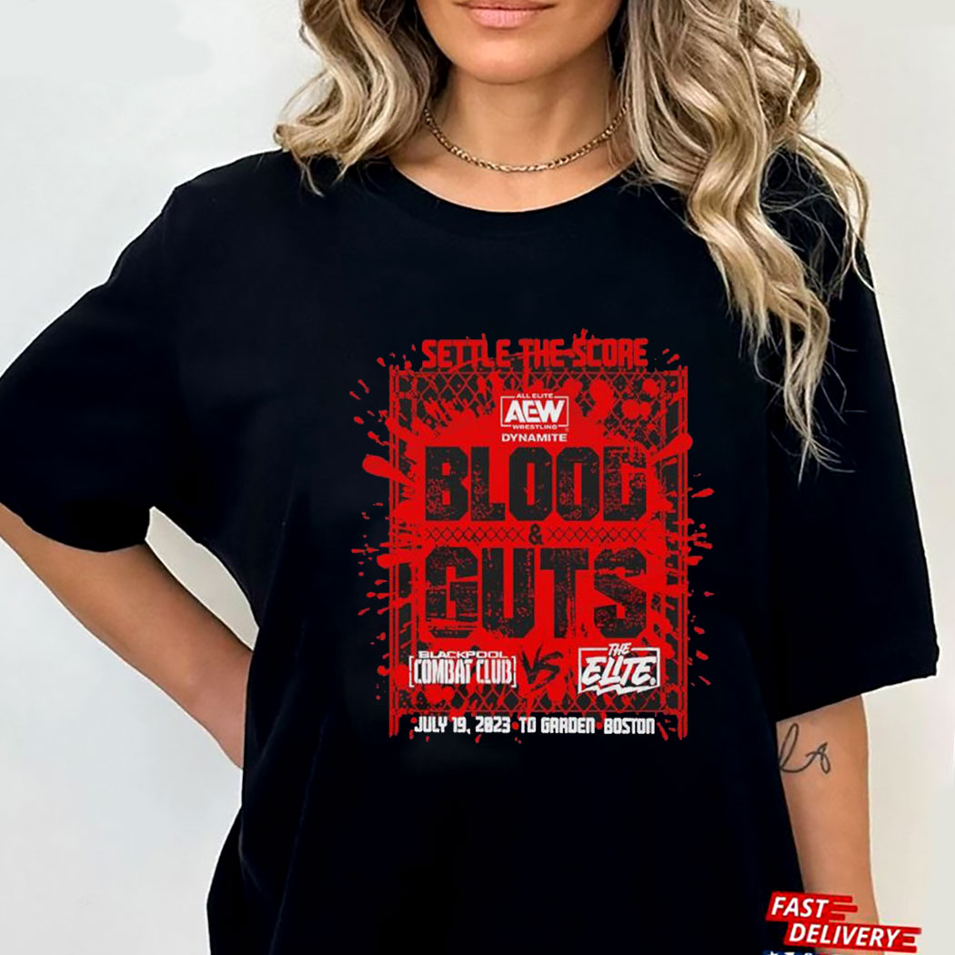 .Introducing the Blood And Guts 2023 Settle The Score T-Shirt, a must-have for all fans of intense and thrilling competition. This bold and eye-catching design is perfect for those who appreciate the adrenaline rush of high-stakes battles.