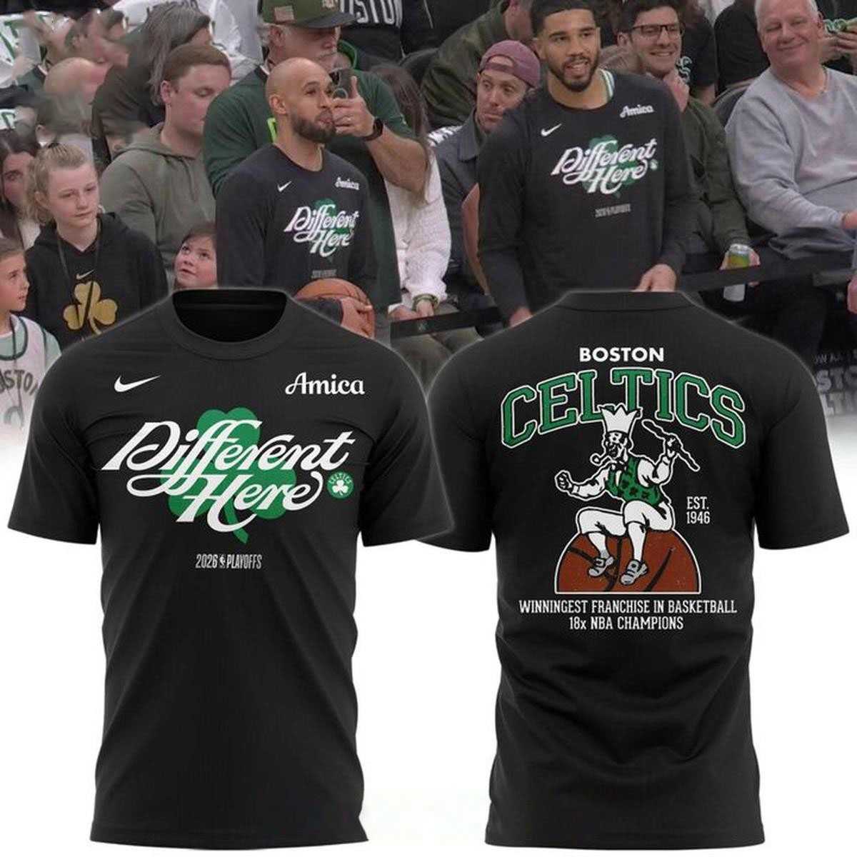 Product Details – Boston Celtics 2026 Playoffs Different Here NBA All Black Tee Hoodie