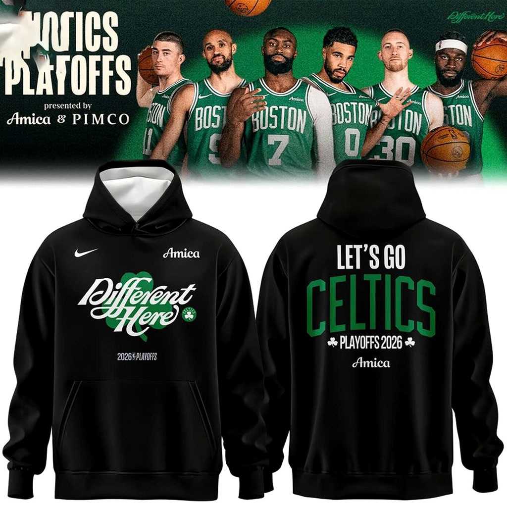 Product Details – Boston Celtics Different Here Playoffs 2026 Tee Hoodie