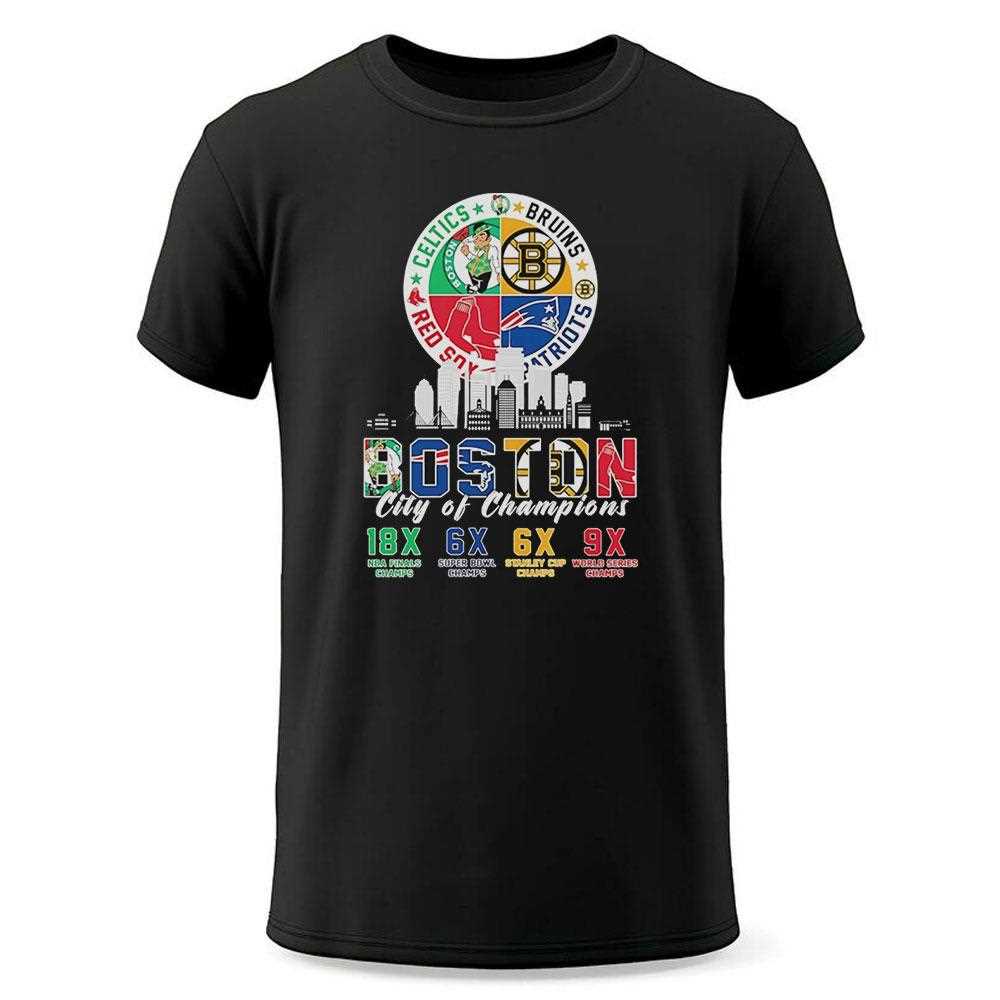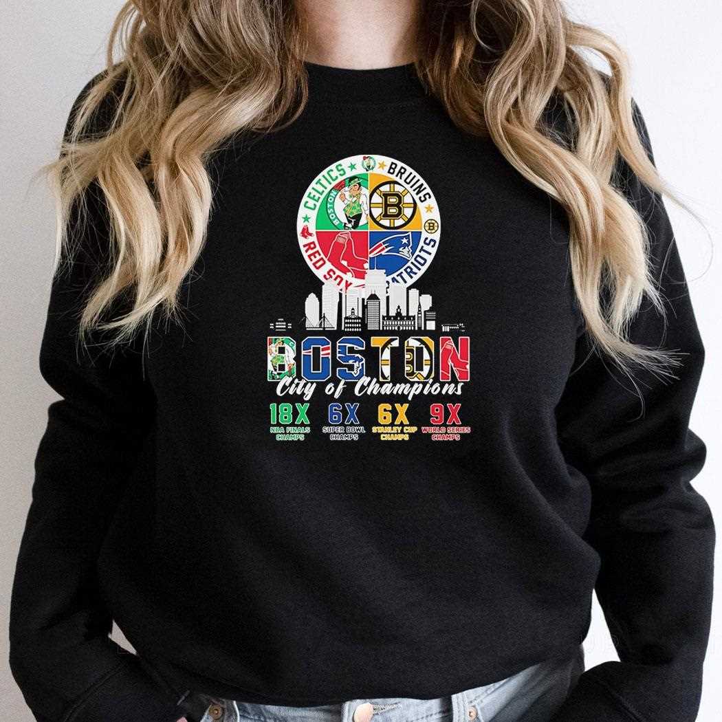 Boston City Of Champions 18x Nba Finals Champs 6x Super Bowl Champs Logo Shirt