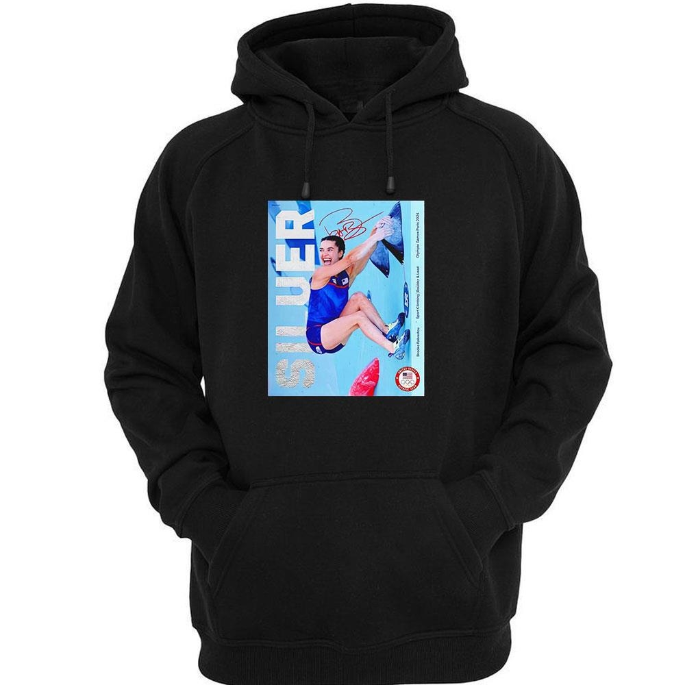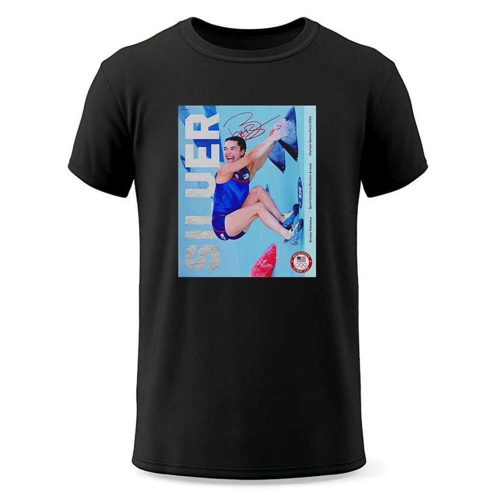 Raboutou’s ability to excel in both the boulder and lead disciplines showcases her versatility and mastery of the sport. Her silver medal in Tokyo was a historic moment, not just for her, but for the entire climbing community. The Brooke Raboutou Silver Medal Boulder And Lead Team USA Olympic Paris 2024 Signature Shirt is a tangible representation of her accomplishments and a symbol of the bright future that lies ahead for this rising star.