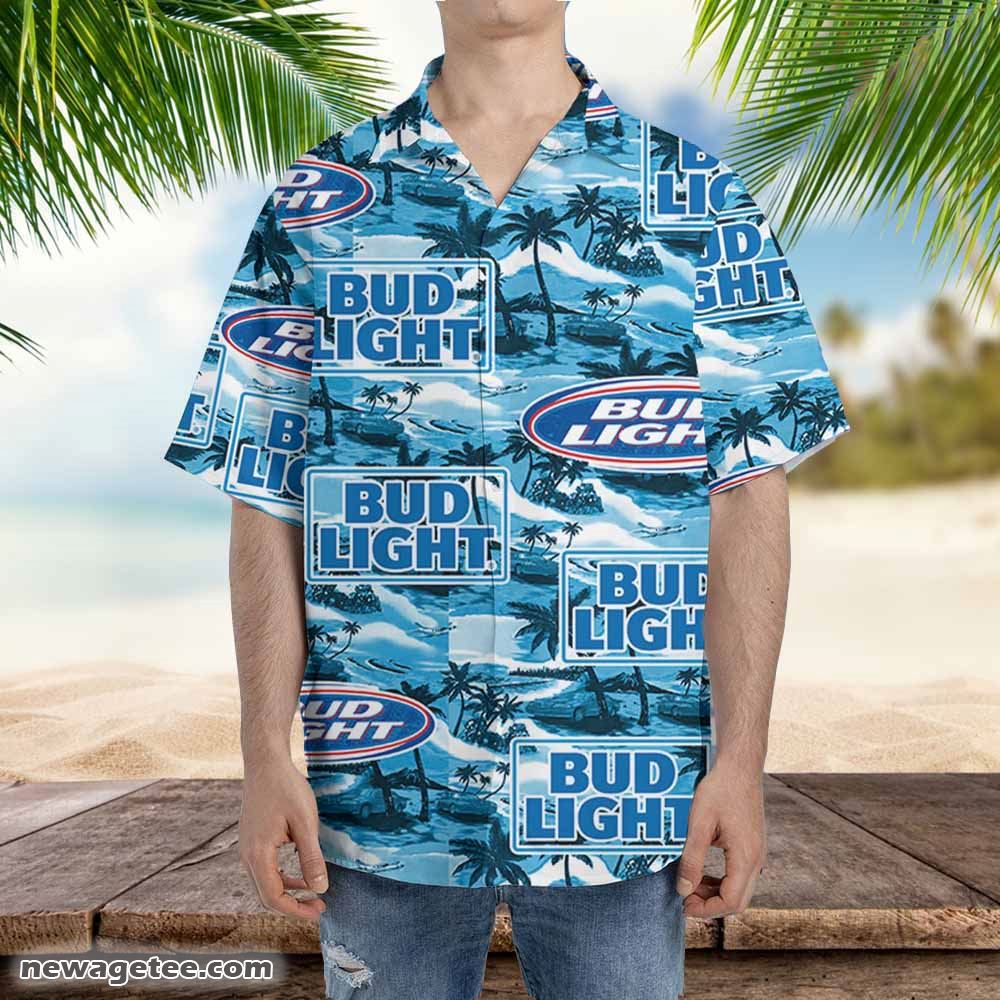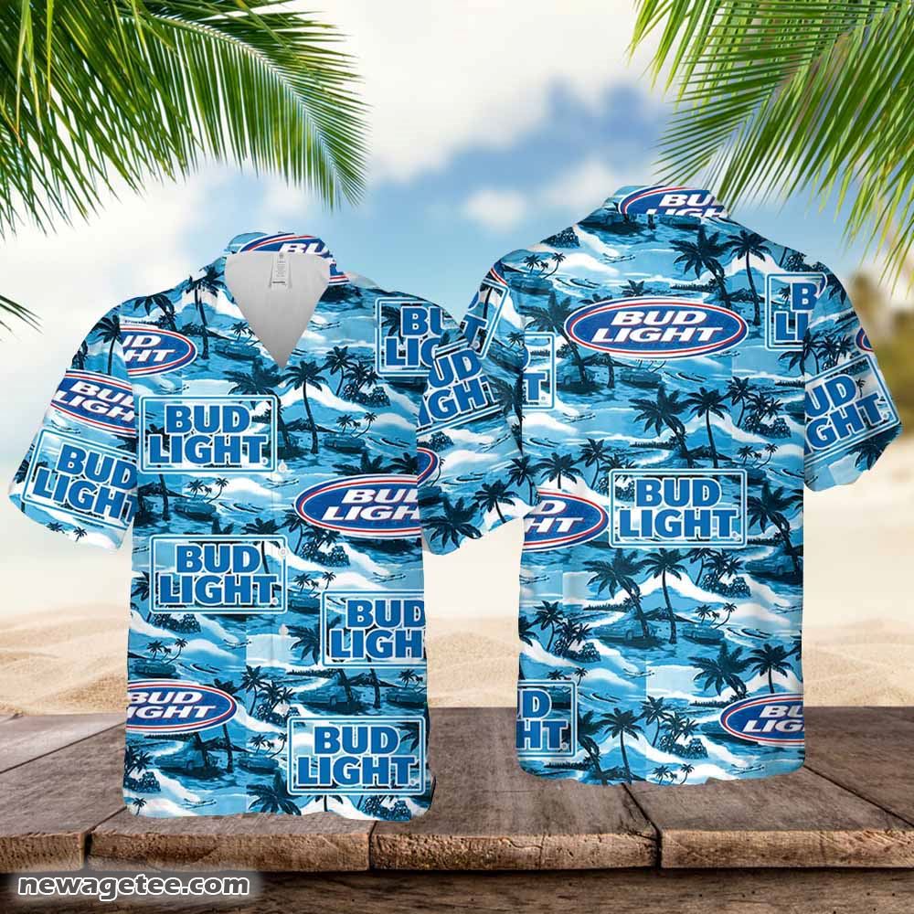 Bud Light Hawaiian Button Up Shirt Sea Island Pattern