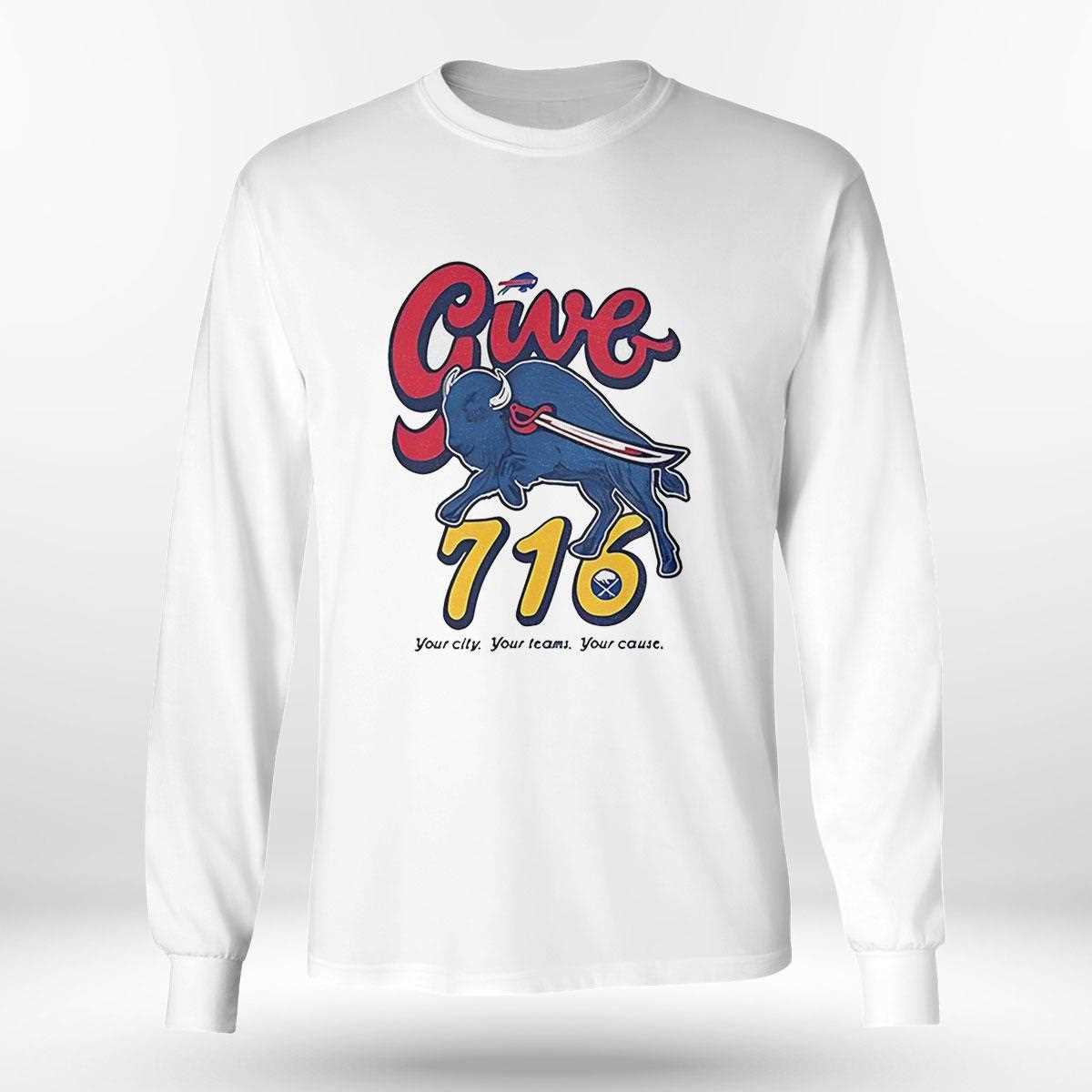 .The Buffalo Bills have always been more than just a football team; they embody the spirit and resilience of our community. The “Give 716 Your City Your Teams Your Cause” shirt is not just a piece of apparel; it’s a powerful statement that unites fans in support of our beloved team and the causes that matter most to us. By wearing this shirt, you’re not only showcasing your pride for the Bills but also standing up for the values we hold dear in Buffalo.
