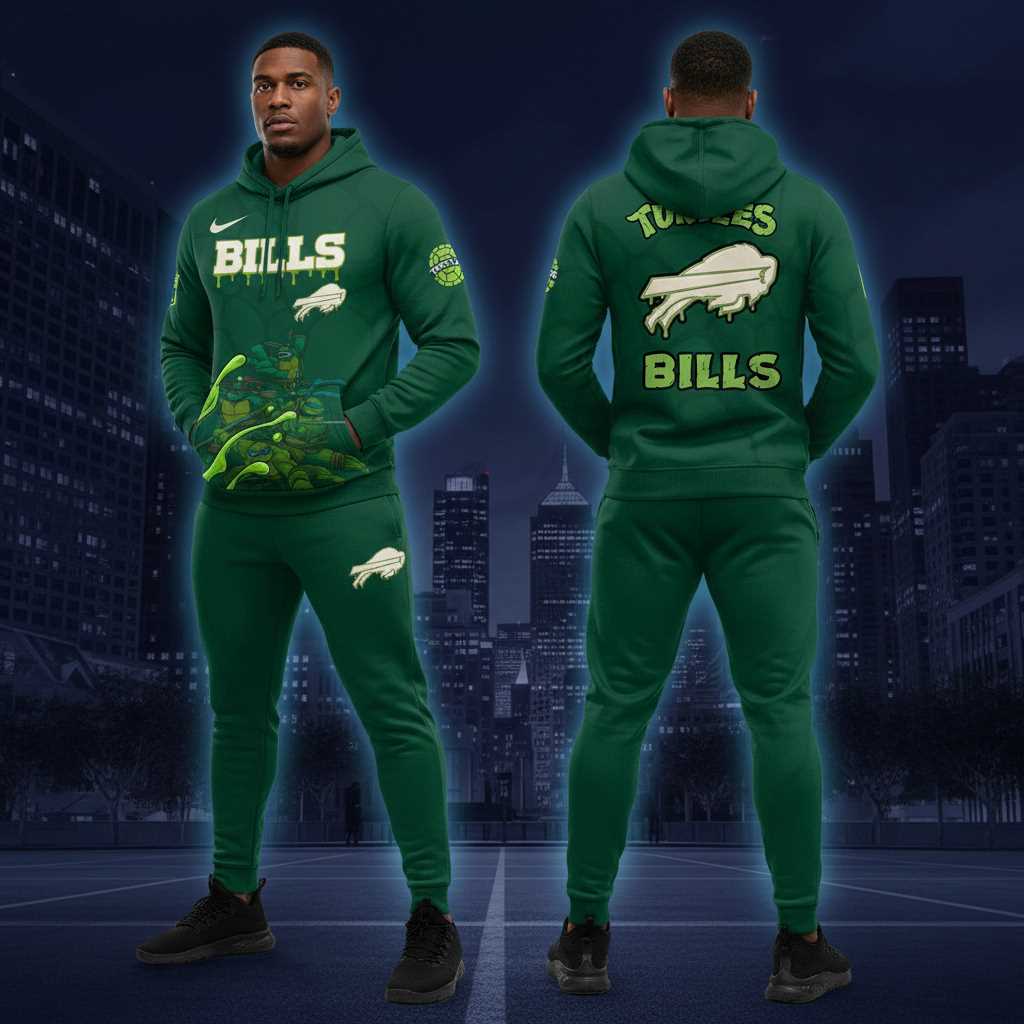 Unleash the spirit of the gridiron and the power of the sewers with the Buffalo Bills Mutant Street Fighters Hoodie. This extraordinary piece of fan gear is a masterclass in crossover design, merging the legendary Buffalo Bills aesthetic with the high-octane energy of the Teenage Mutant Ninja Turtles. The hoodie is bathed in a vibrant shade of green, symbolizing both the turtles’ lair and the competitive grit of Highmark Stadium. On the chest, you’ll find the iconic Bills buffalo logo, rendered with a sleek finish that commands respect. However, the true showstopper lies on the back, where the four heroes in a half-shell are illustrated in an epic battle pose, ready to defend the goal line alongside the Buffalo defense.