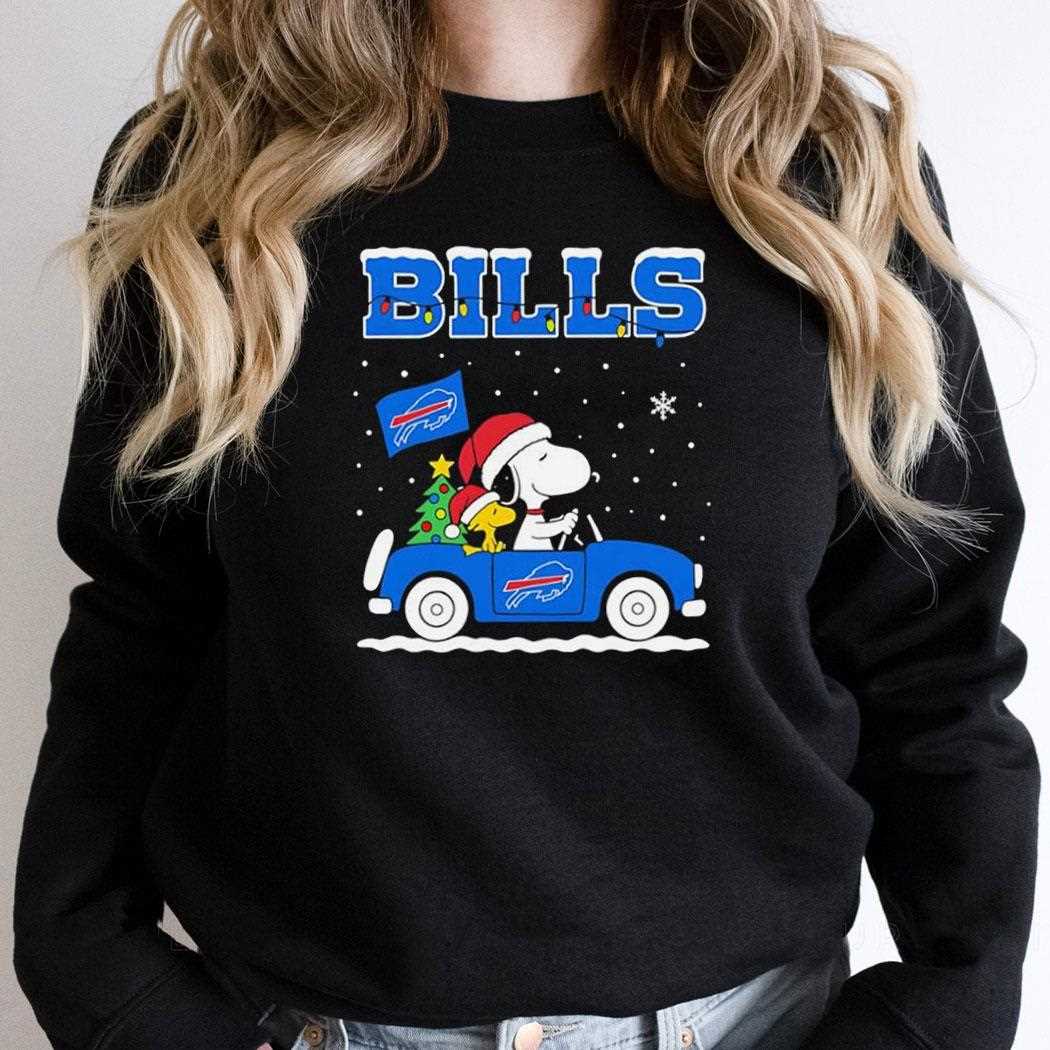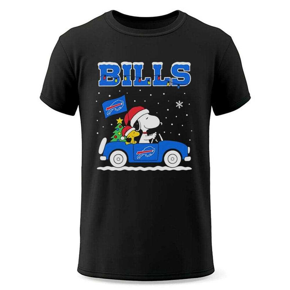 Buffalo Bills Snoopy And Woodstock Santa Christmas Go By Car Tee