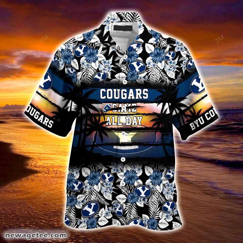 - Our Byu Cougars Summer Beach Hawaiian Shirt Hibiscus Pattern For Sports Fan is made of kate silk-polyester fabric, offers outstanding durability, insulation, and wrinkle resistance. This summer, enhance your wardrobe with a Short Sleeve Hawaiian Beach Shirt that is perfect for casual outings, dates, and sunny beach parties. Its versatile design makes it suitable for a variety of occasions. Made of 100% KATE SILK, this shirt is an excellent choice for special events like Christmas, birthdays, celebrations, and housewarming gifts.