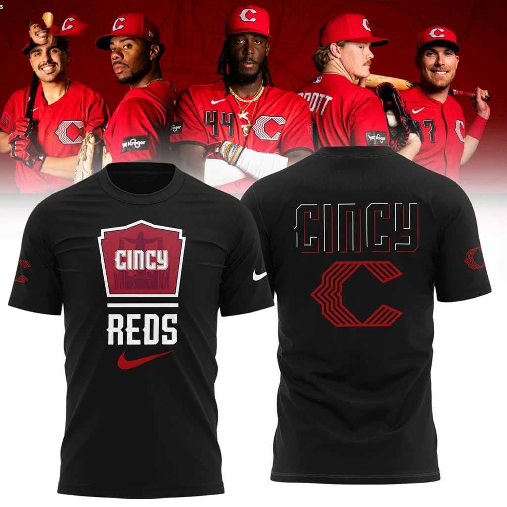 Step into the heart of the Queen City with a garment that defines urban athletic excellence and local pride. The C.Reds 2026 City Connect Stadium Shirt is a masterclass in modern sports fashion, featuring a sleek jet-black base that makes the vibrant “Cincy” typography pop with professional intensity. This design moves away from traditional baseball aesthetics to embrace a gritty, industrial look that reflects the hardworking spirit of Cincinnati. The front showcases a high-contrast red-and-white wordmark, while the back is adorned with the iconic oversized “C” logo, ensuring your allegiance is unmistakable from any angle in Great American Ball Park.