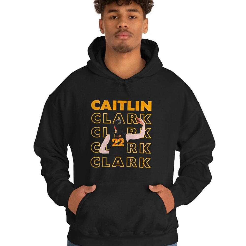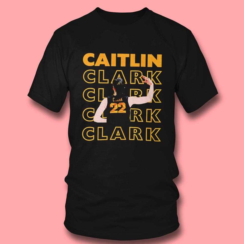 Celebrate the dominance of a generational talent with this sleek and powerful basketball tee. The design takes a unique perspective, featuring the back view of Caitlin Clark’s jersey, number 22, as she seemingly walks onto the court or away from a defeated opponent. This “Turn Away” perspective symbolizes confidence, leadership, and the fact that the competition is always chasing her. The graphic highlights the name “CLARK” and the iconic number “22” in bold gold lettering, creating a striking contrast against the black fabric.