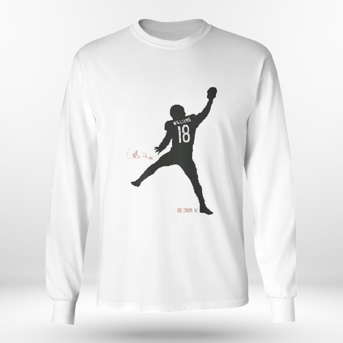 Witness the dawn of a new era in the Windy City with this Caleb Williams tribute. The design features a sleek, minimalist silhouette of the superstar quarterback in mid-motion, highlighting his signature poise and athletic form. The high-contrast black and white graphic includes his iconic number 18 and a subtle “Iceman” tagline, reflecting his cool demeanor under pressure. This shirt is essential gear for Chicago fans who are ready to see their franchise quarterback take flight. Printed on a premium, mid-weight cotton base, it offers a tailored fit that looks great at the stadium or on the city streets. The high-definition screen print is designed to remain sharp, ensuring your support for the future of the franchise is loud and clear. It captures the anticipation and excitement of a generational talent in a stylish, modern format. Represent the future of football in style—buy your Caleb Williams Iceman Silhouette Tee now and show your pride!.