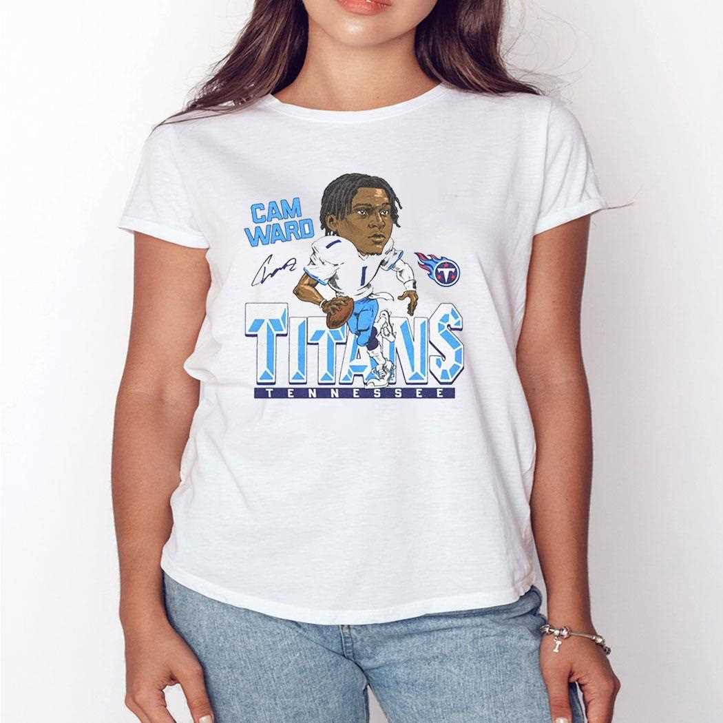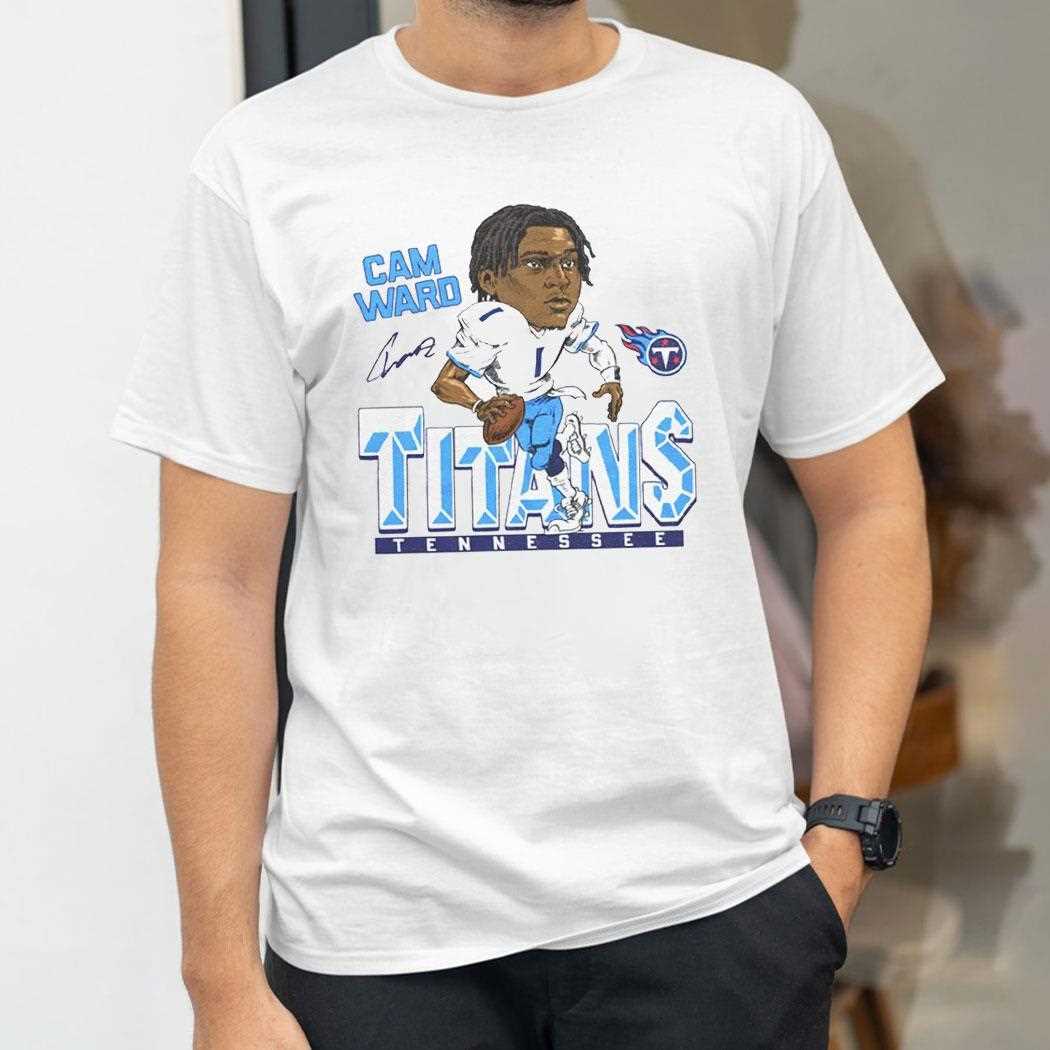 .Introducing the Cam Ward Tennessee Titans Cartoon Shirt—a must-have for any true fan! This unique shirt combines vibrant graphics with a playful cartoon design, making it the perfect way to showcase your team pride while standing out from the crowd. Imagine wearing this eye-catching piece at the next game, instantly elevating your fan gear and sparking conversations with fellow Titans supporters.