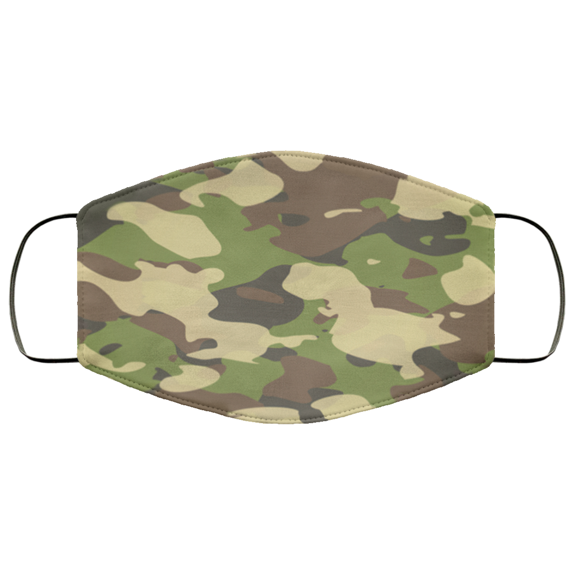- Comfy two layer protective face mask with black soft stretch ear straps.