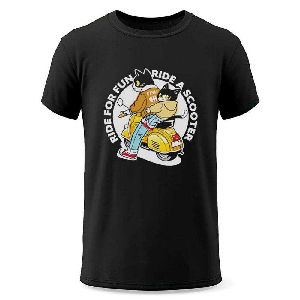 Add a burst of joy to your day with this ultra-colorful “Scooter Cats” design. Featuring adorable felines riding vibrant scooters through a stylized city landscape, this shirt is all about fun and positivity. The “candy color” palette uses bright yellows, pinks, and blues to create a cheerful aesthetic that is perfect for summer or casual outings. It’s a whimsical piece that appeals to cat lovers and fans of quirky, artistic illustrations. The layout is balanced and full of life. Ride in style with the Candy Color Scooter Cats Fun City Ride Tee now!. T-shirt !