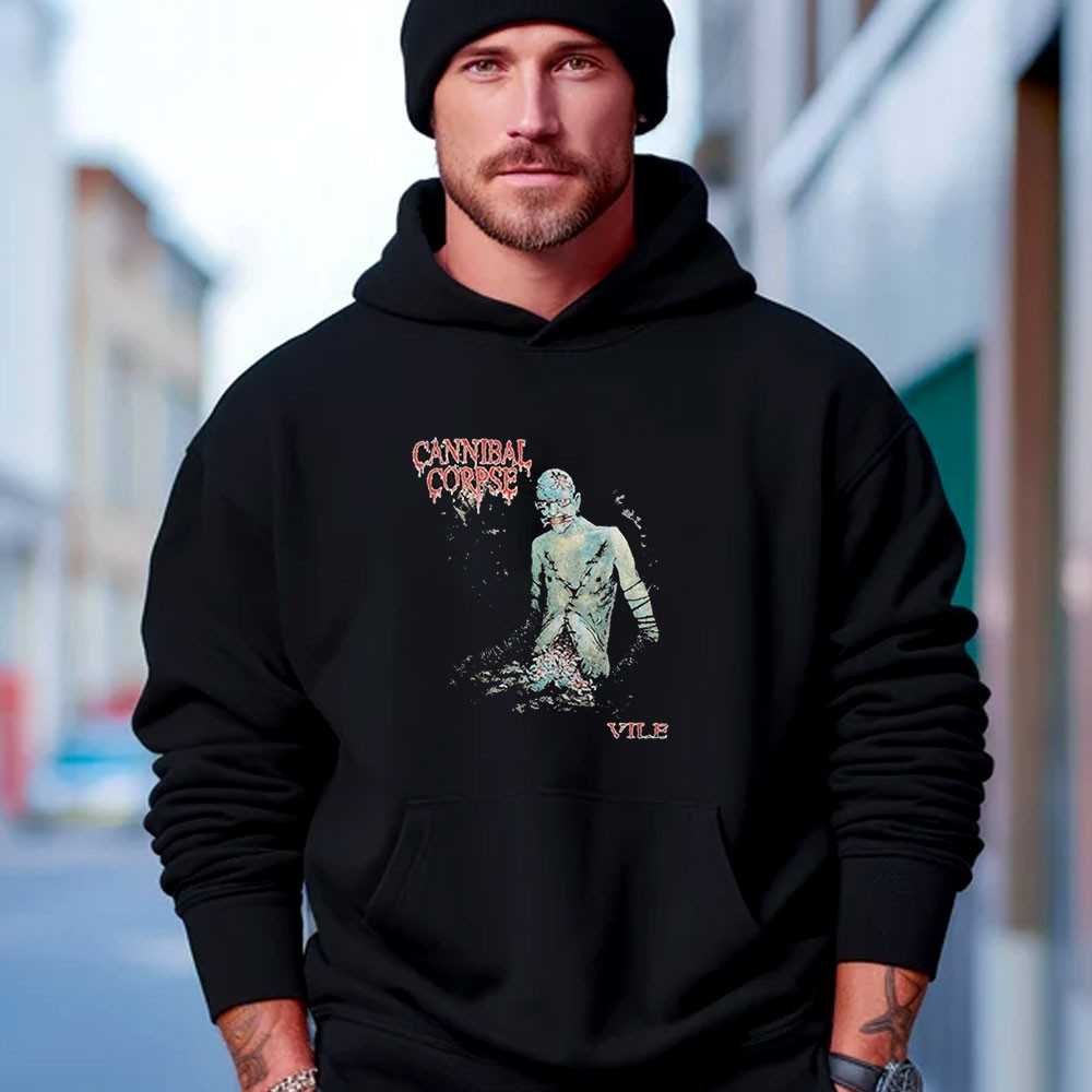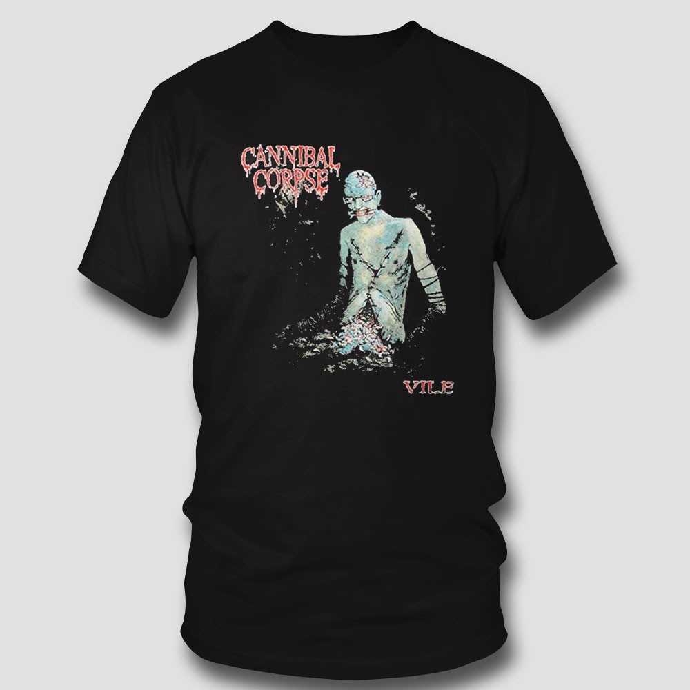Unleash your inner demon. The Cannibal Corpse Vile Death Metal Shirt is a must-have for any true fan of the band, and we’ve made sure its quality is as brutal as the music. Printed on a heavy-duty, yet comfortable, 100% cotton T-shirt, it’s built to withstand the pit. Get yours now!. T-shirt !