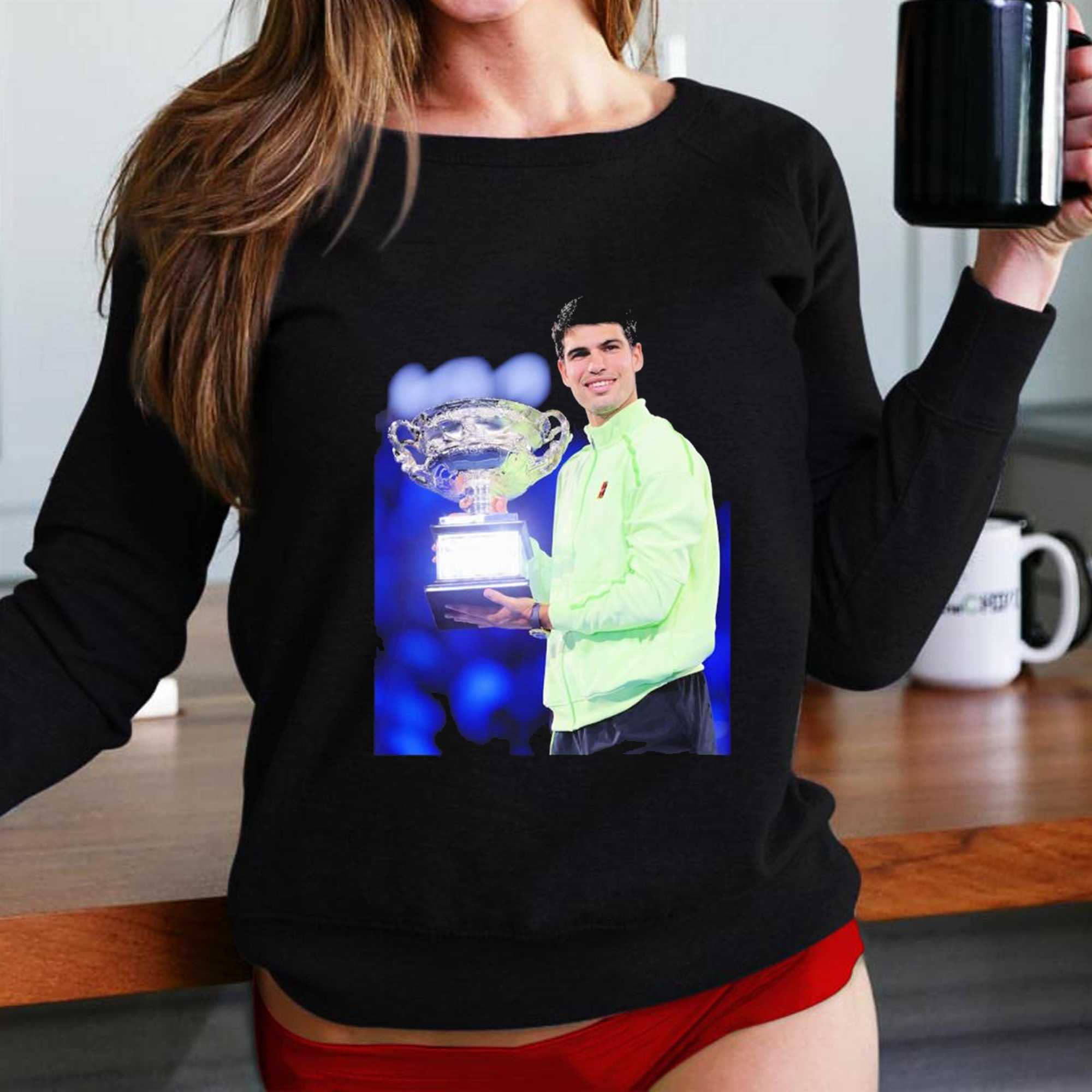 If you’re searching for a Carlos Alcaraz 2026 Australia Open Champion Holding Trophy Photo Shirt that can offer both a soft feel and breathability to keep you comfortable on sweltering summer days, look no further. Don’t wait any longer, add it to your cart and experience the benefits of our 100% cotton T-shirt !