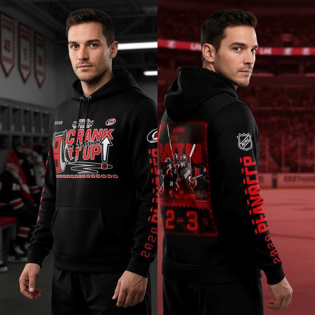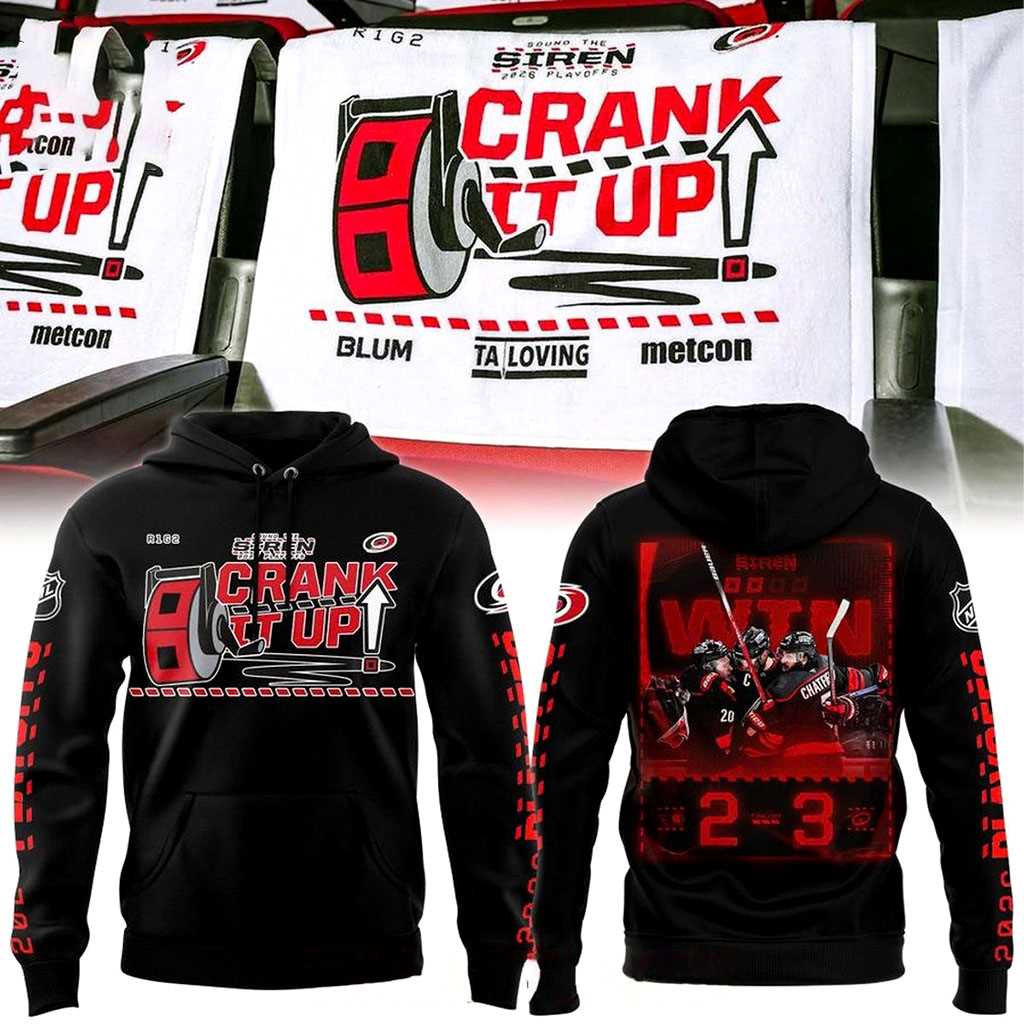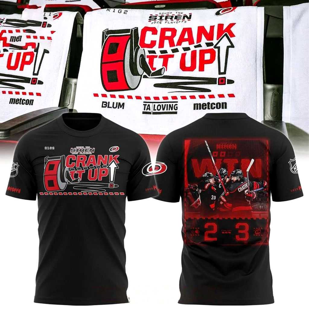Product Details – Carolina Hurricanes 2026 Stanley Cup Playoffs Crank It Up Tee Hoodies