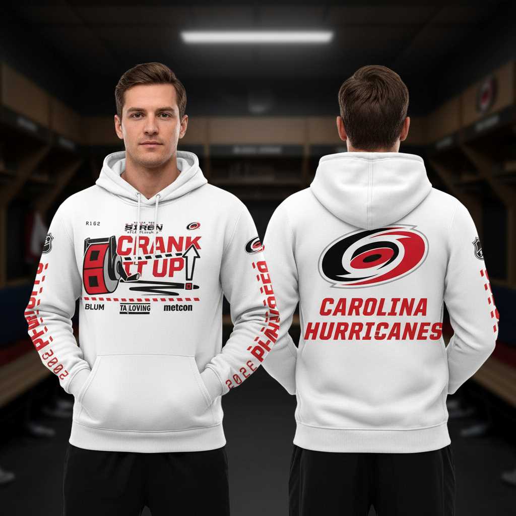 Premium quality Carolina Hurricanes 2026 Stanley Cup Playoffs Crank It Up Tee Hoodies design. 100% cotton, machine washable.