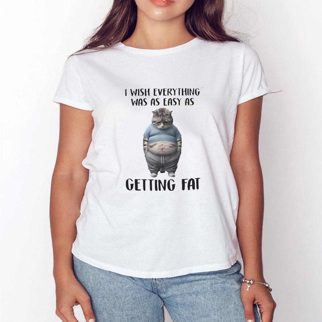 Don’t settle for anything less than the easy, breezy lifestyle embodied by this “Cat I Wish Everything Was As Easy As Getting Fat” Tee. Embrace your inner feline and let the world know that you, too, aspire to the carefree existence of your furry friends..