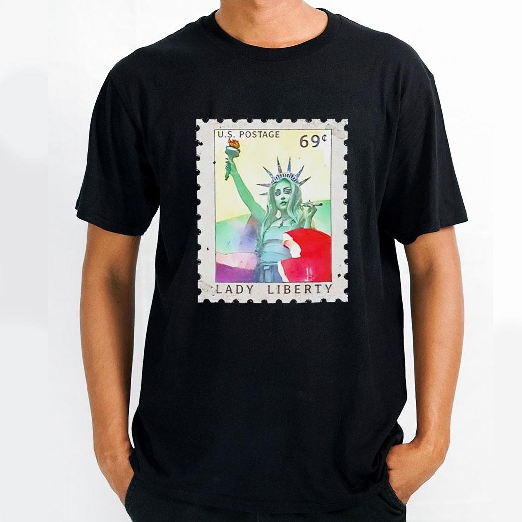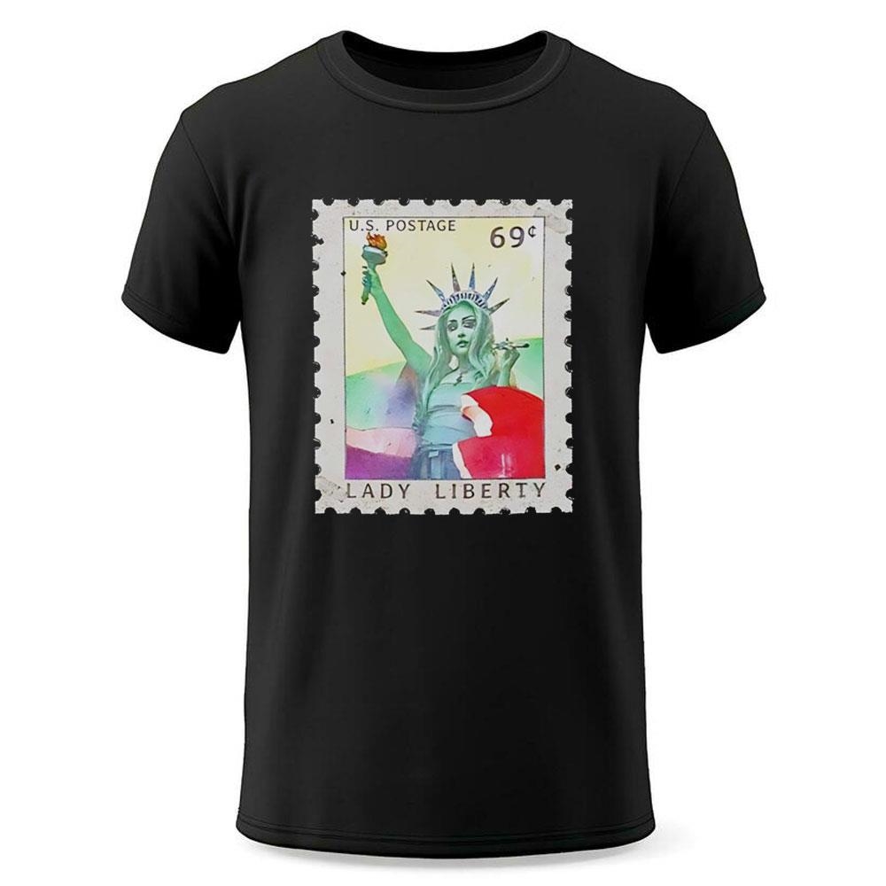 Crafted with high-quality materials and impeccable attention to detail, this shirt features a striking Lady Liberty graphic that pays homage to the iconic symbol of freedom. The vintage-inspired stamp design adds a touch of nostalgia, while the soft, comfortable fabric ensures all-day wearability.