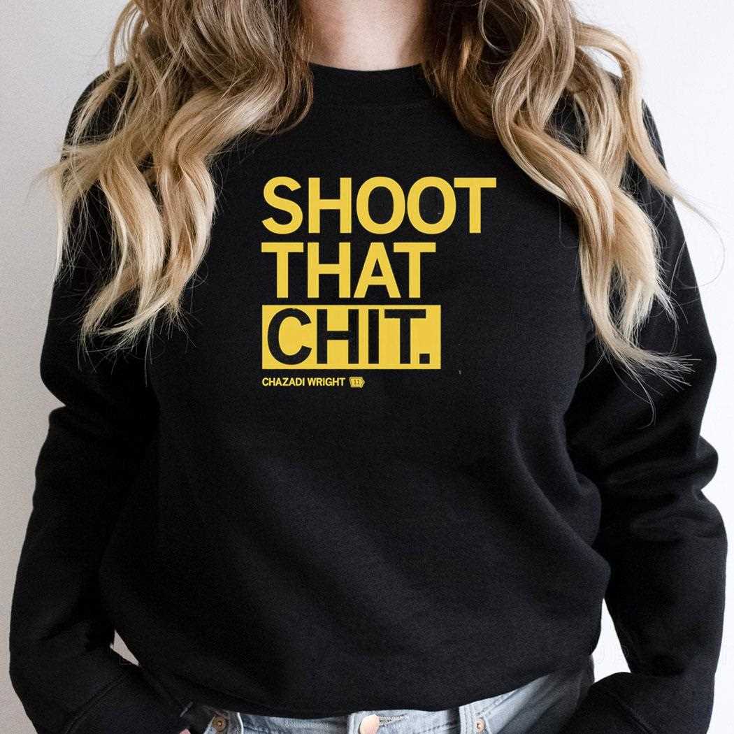 Elevate your fan game and show your support for court dominance with the Chazadi Wright “Shoot That Chit” tee. This design captures the high-octane energy of the basketball court, featuring a dynamic action graphic of the star player. The bold, vibrant yellow typography jumps off the dark fabric, delivering a powerful message of confidence, scoring power, and hard work. It’s the ultimate gear for supporters of collegiate basketball who want to represent a specific star and their “go-get-it” attitude. Crafted from a high-performance cotton blend, this shirt is designed for maximum comfort whether you’re playing a pickup game or shouting from the front row of the bleachers. The high-quality print is durable and designed to survive the intensity of the season’s biggest games. Stand out as a true connoisseur of the sport with this unique, athlete-focused design that celebrates every clutch bucket and defensive stop. Cheer for every basket and represent the grind—buy the Chazadi Wright Shoot That Chit Tee today!. T-shirt !